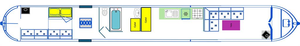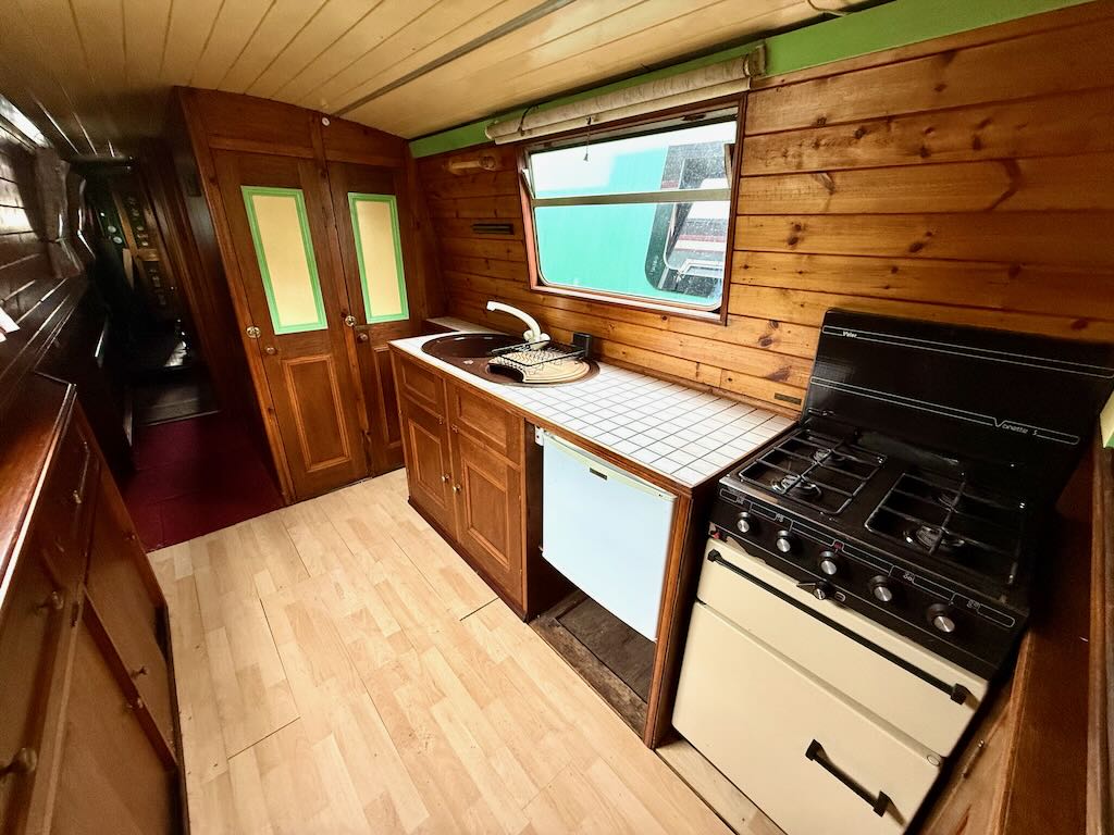 Contrary Mary is a 4 berth, 60ft traditional style narrowboat, built in 1987 by Colecraft. She features a saloon with stove and L-shaped seating that converts to a double bed, galley with cooker, fridge and large cupboard, bathroom and separate toilet, a central engine room housing the lovely Russell Newbury DM2 followed by a boatman's cabin with traditional drop down bed and stove.