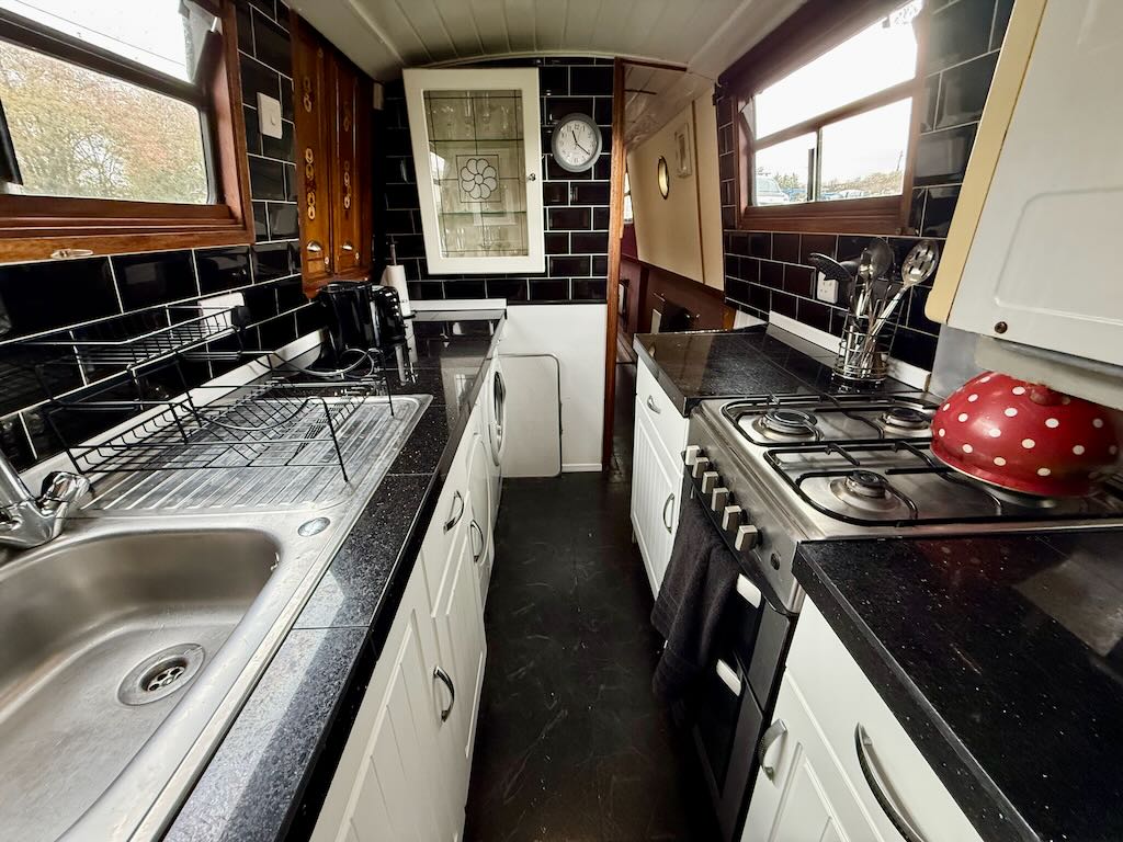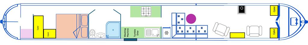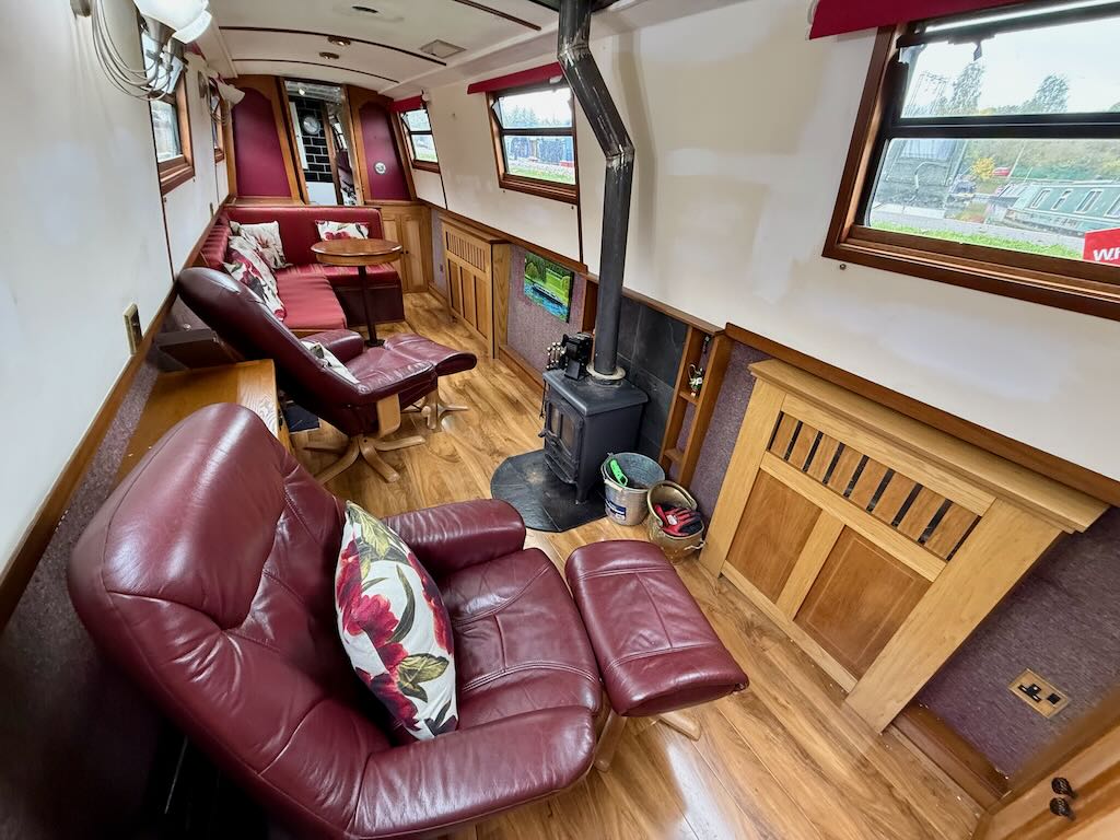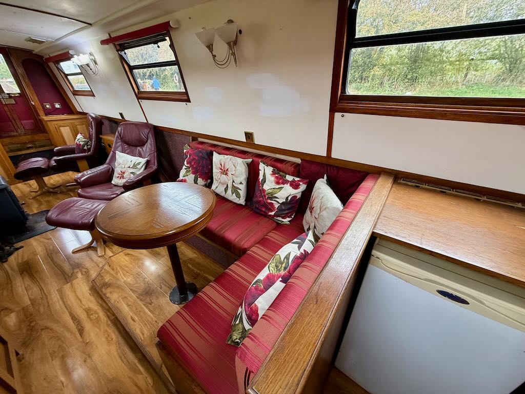 Hirondelle is a 4 berth, 62ft traditional style narrowboat, built in 1992 by Stenson. She features a large saloon with stove, chairs and L-shaped seating that converts to a double bed, a central galley with cooker, fridge, washing machine and tumble drier, walk through bathroom with shower, toilet and vanity basin, and a fixed double bed at the stern.