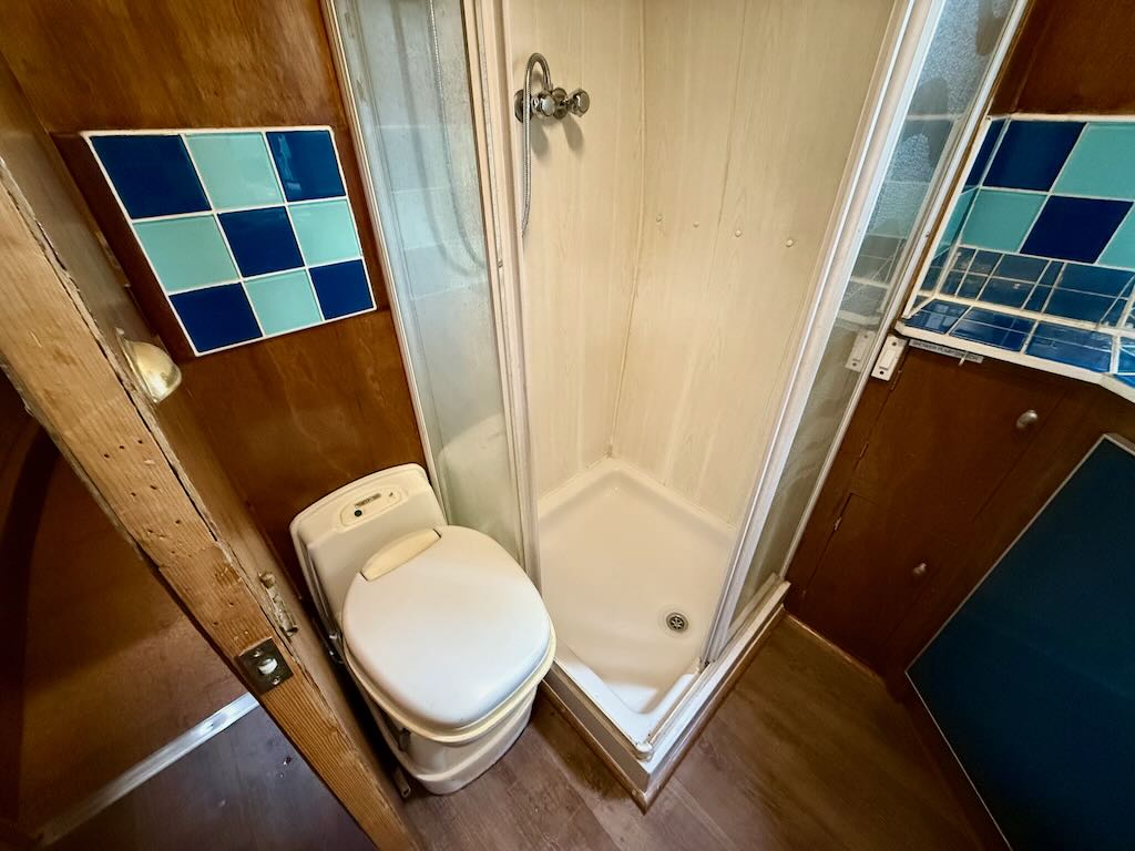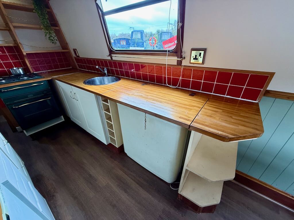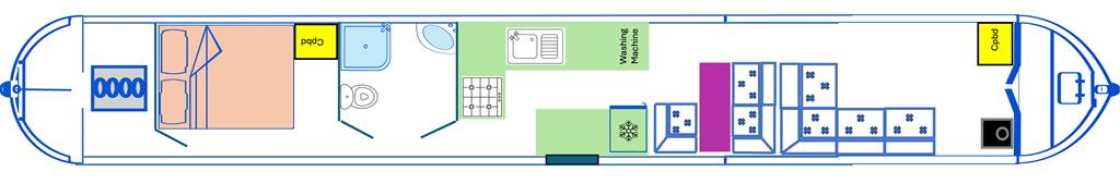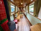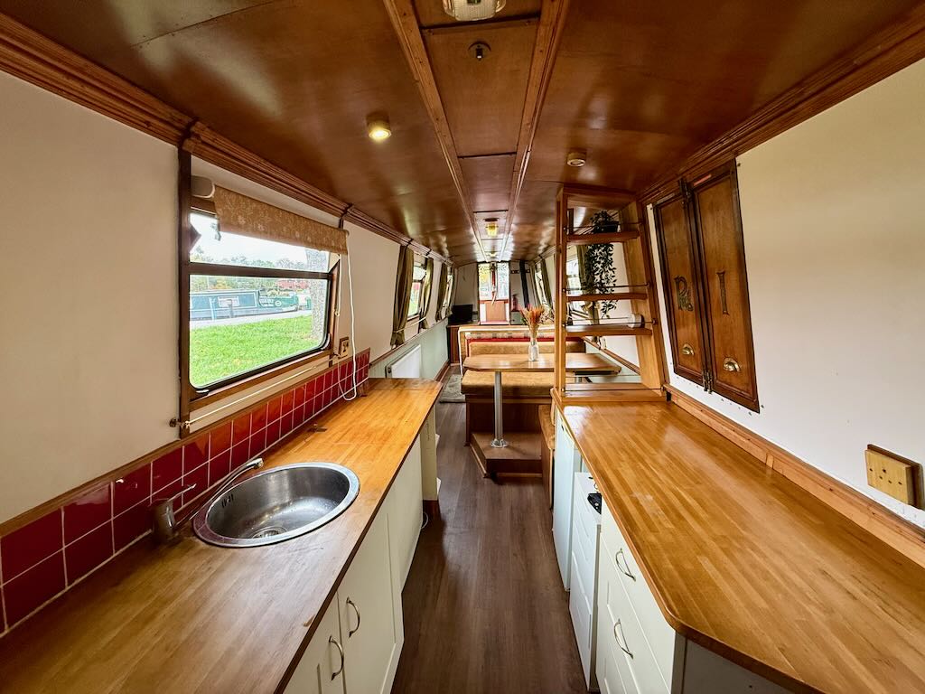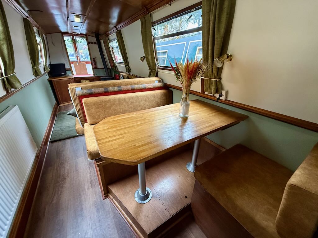 Carpe Diem is a lovely 57ft traditional style narrowboat, built in 2003 by Hixon Boat Builders. She features an open saloon area with L-shaped seating that converts to double bed, a dinette that converts to a single bed, a large galley with a twin tub washing machine, and a fixed double bed at the stern.
