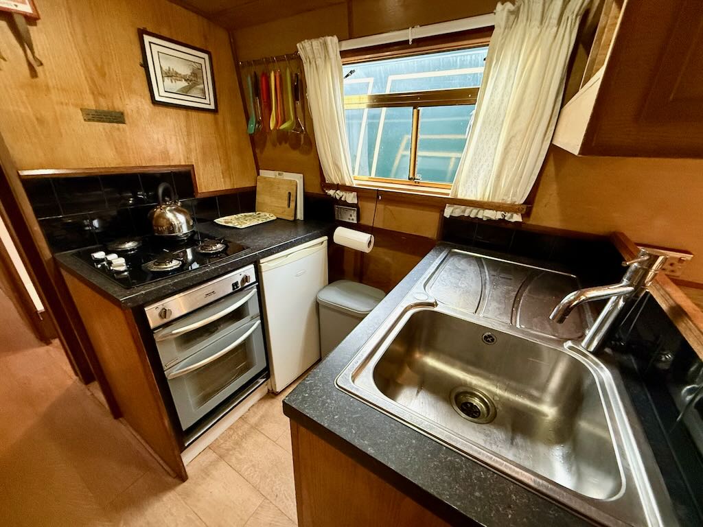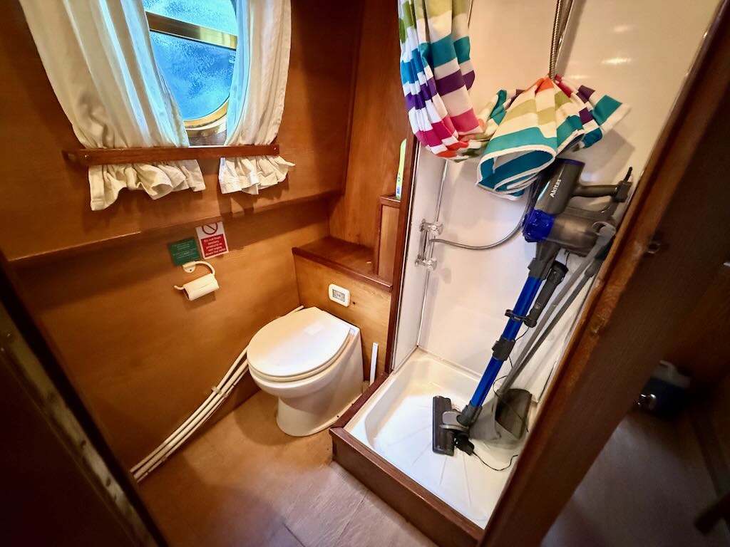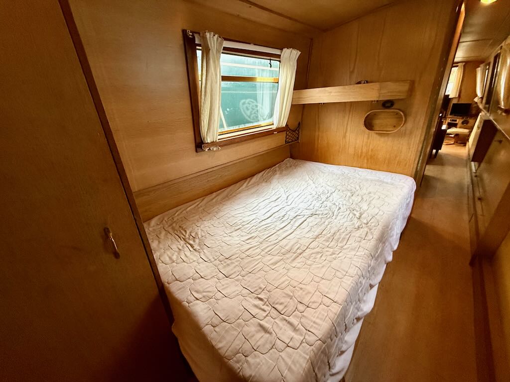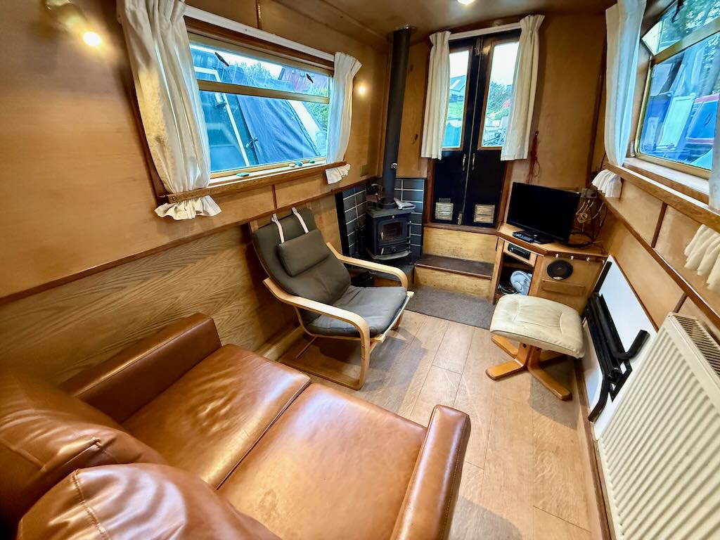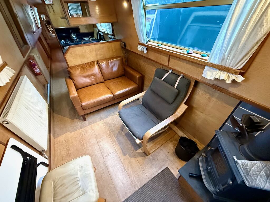 Tara is a 4 berth, 58ft cruiser style narrowboat, built in 2003 by Wessex Narrowboats. She features a saloon with sofa and stove, a galley with cooker and fridge, a bathroom with shower, toilet and vanity basin, a fixed double bed, a further bathroom and then 2 fixed single beds at the stern.