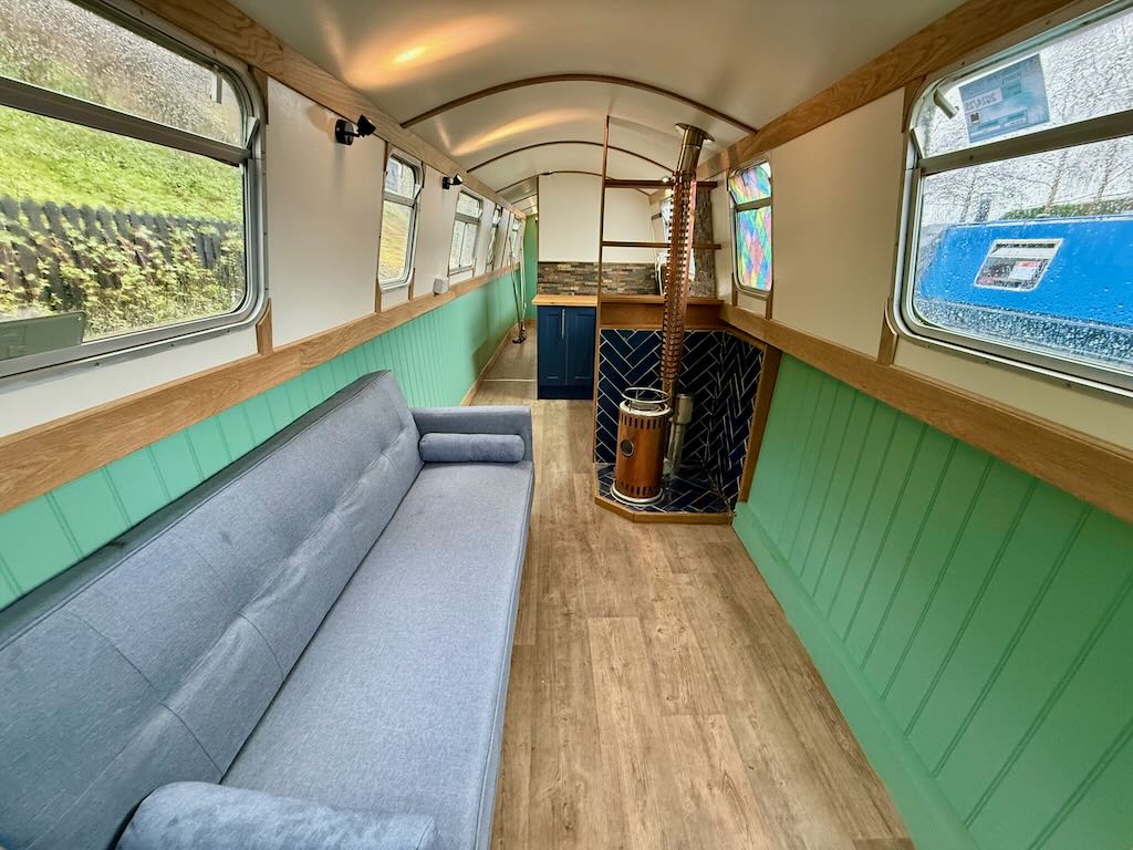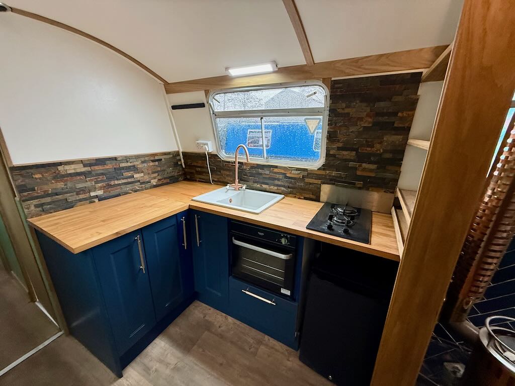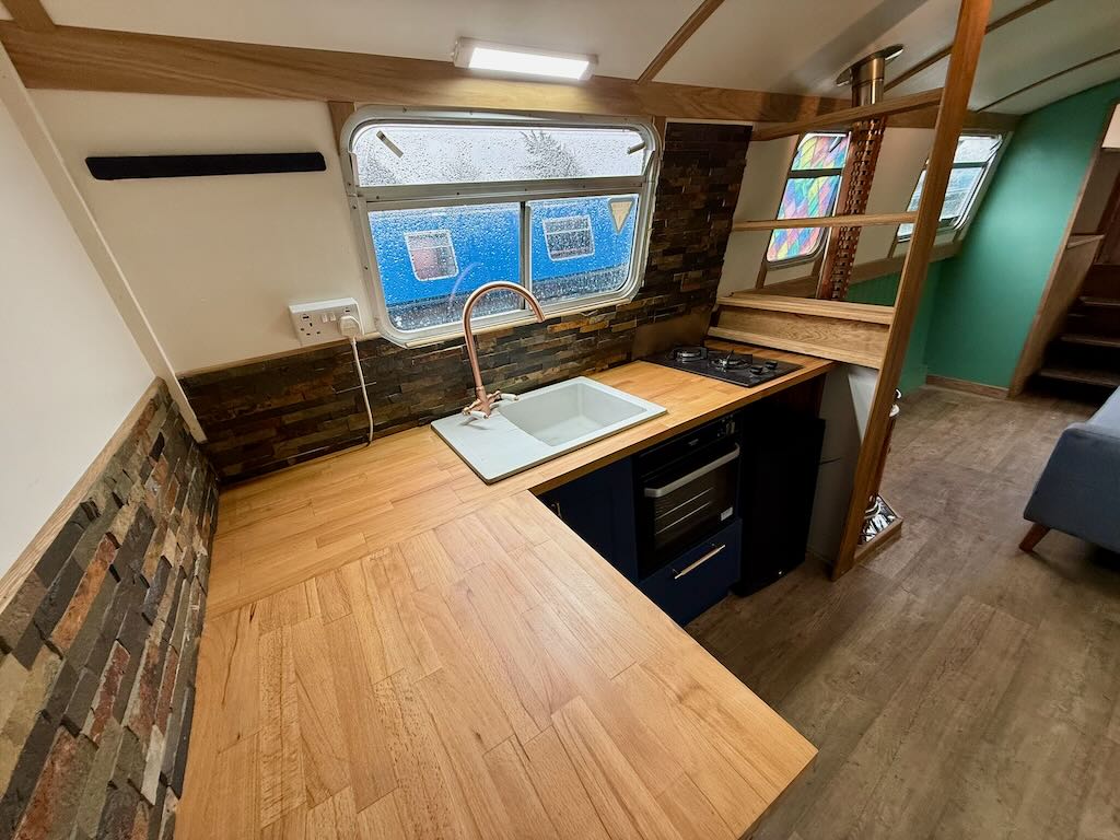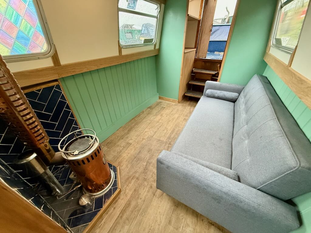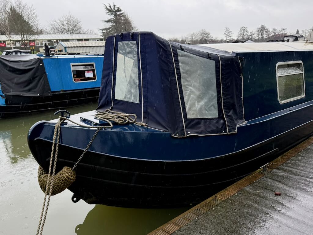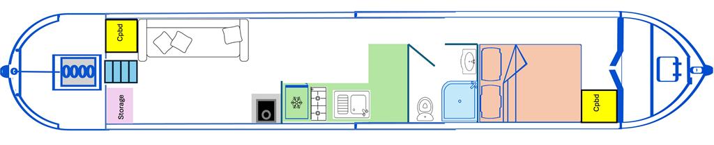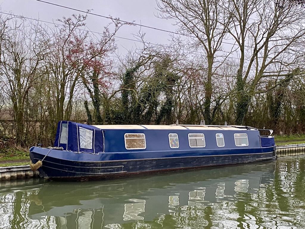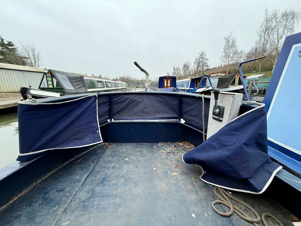 Flirty Gertie is a 4 berth, 43ft cruiser style narrowboat, built in 1994 by David Piper. She features a reverse layout with a saloon with stove and sofa bed, a midships galley, bathroom with toilet shower and vanity basin and a fixed double bed at the bow.