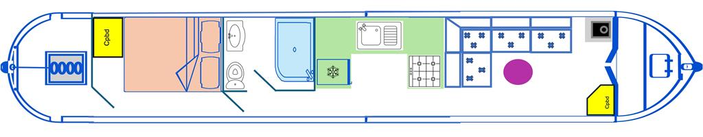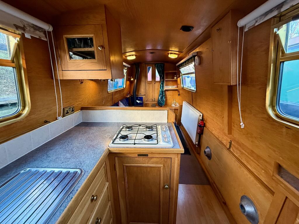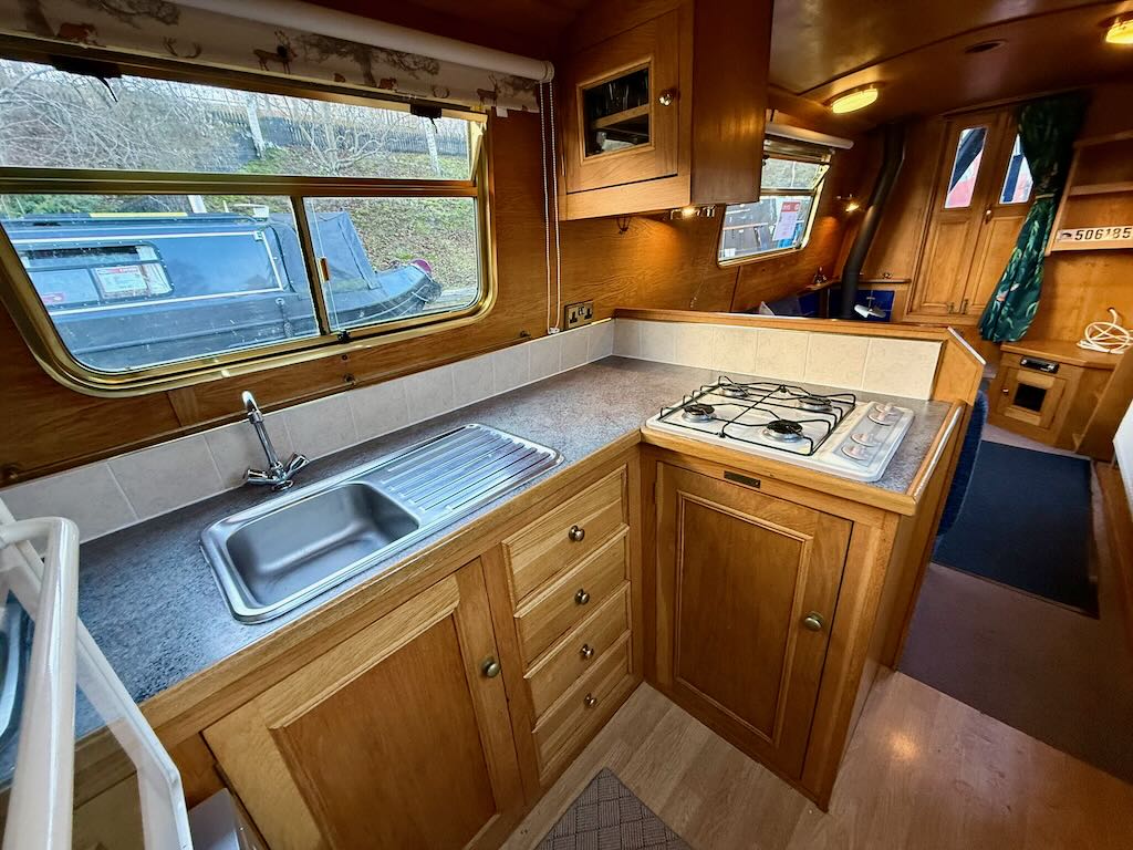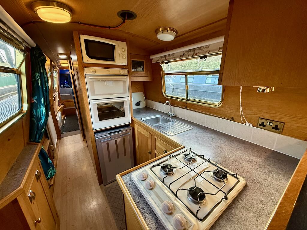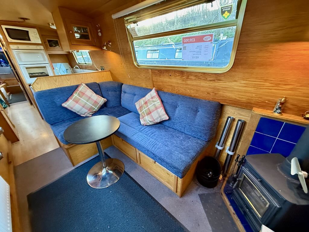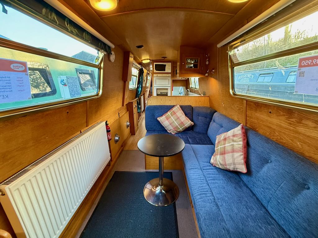 Bill Badger is a 4 berth, 46ft semi-traditional style narrowboat, built in 2001 by Severn Valley Boat Centre. She features a saloon with a stove and L-shaped seating that converts to a double bed, a galley with oven, hob, microwave and fridge, bathroom with shower, toilet and vanity basin and a fixed double bed at the stern.