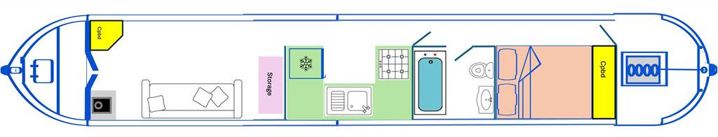 Esme Owl Too is a 4 berth, 45ft cruiser style narrowboat, built in 1997 by Liverpool. She features a saloon with sofa bed and stove, a galley with cooker and fridge, bathroom with shower over bath, toilet and vanity basin and a fixed double bed at the stern.