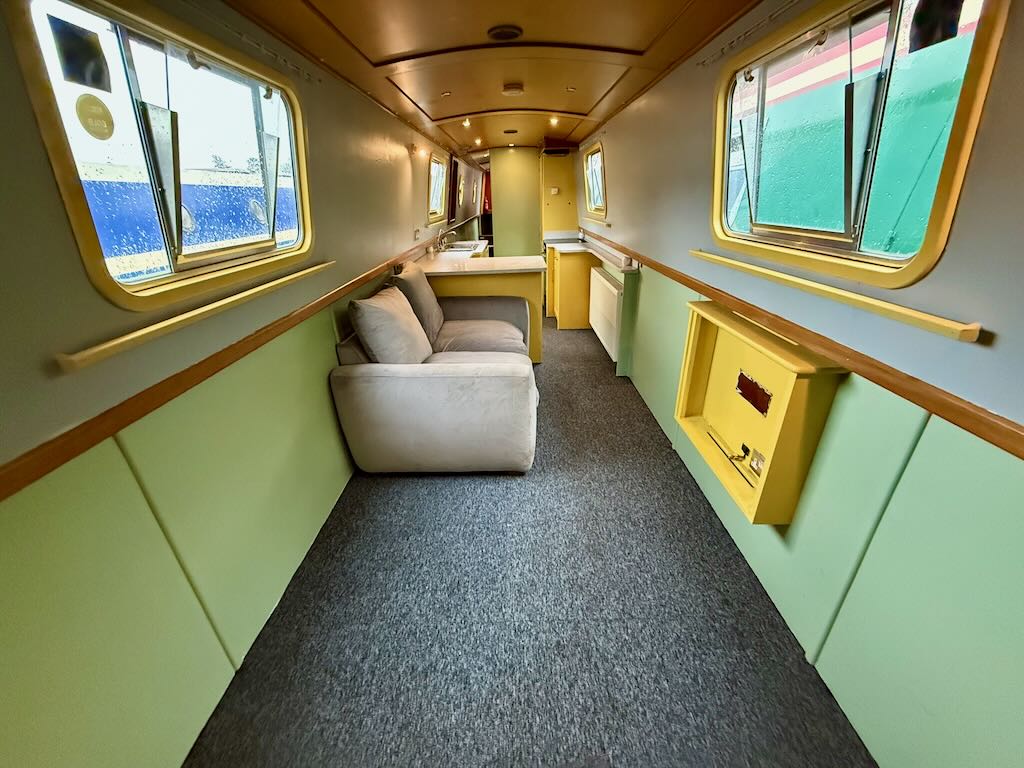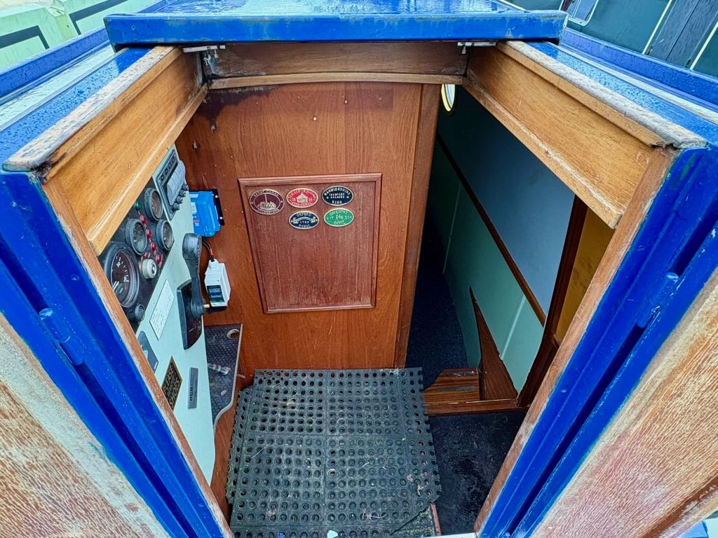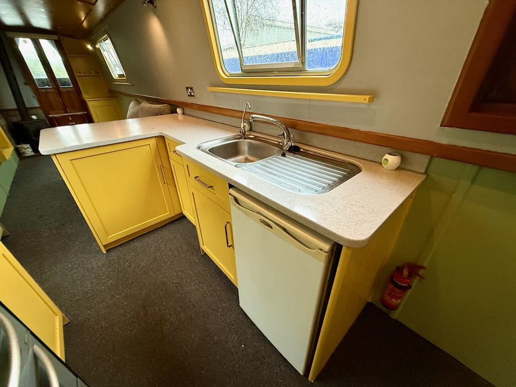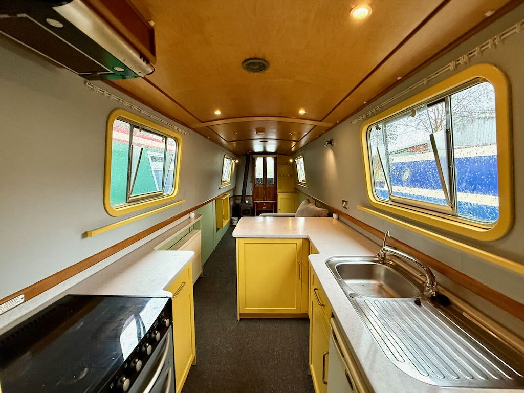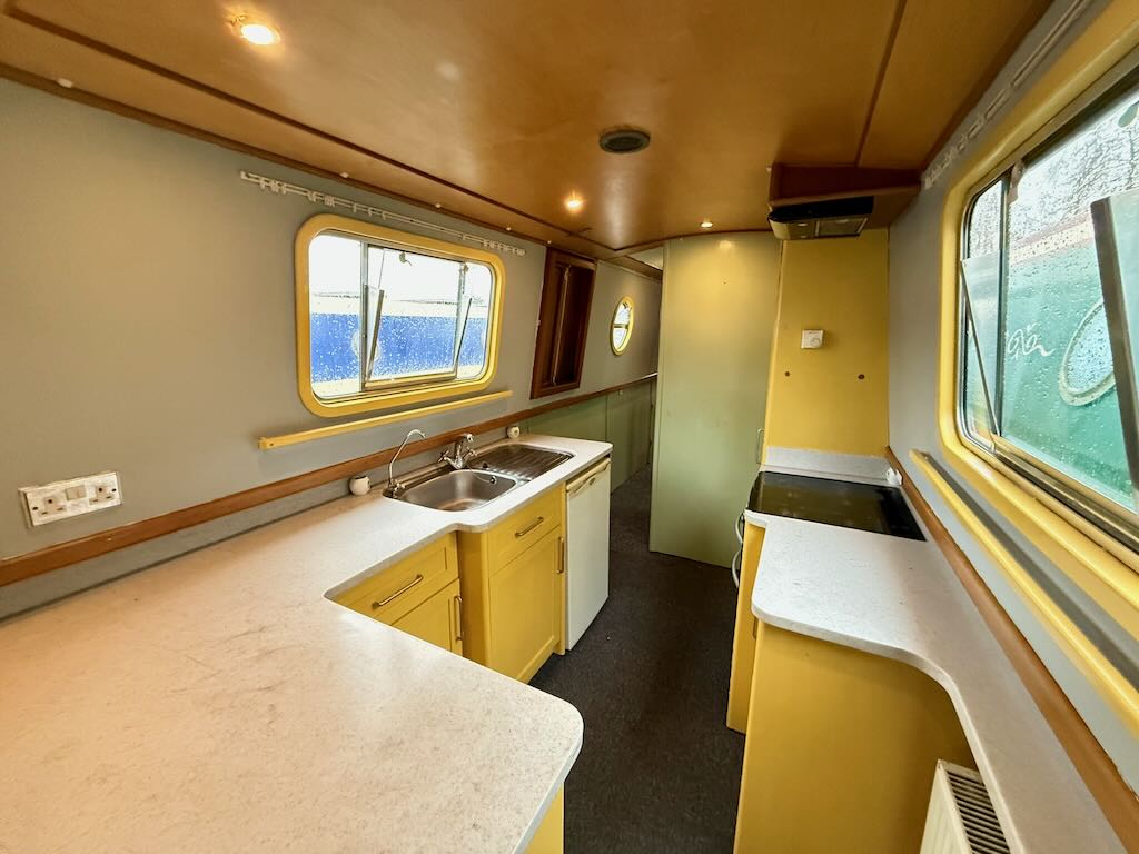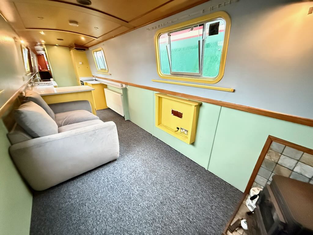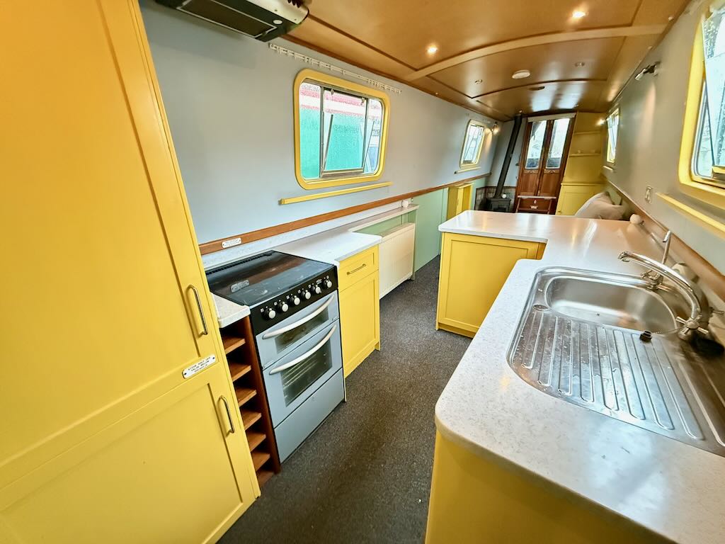 Flying Finn is a 2 berth, 52ft traditional style narrowboat, built in 2007 by Piper Boat Builders. She features a large saloon with sofa and stove, a galley with cooker and fridge, bathroom with shower, toilet and vanity basin and a fixed double bed at the stern. The hull requires some overplating and this will be done as part of the sale.