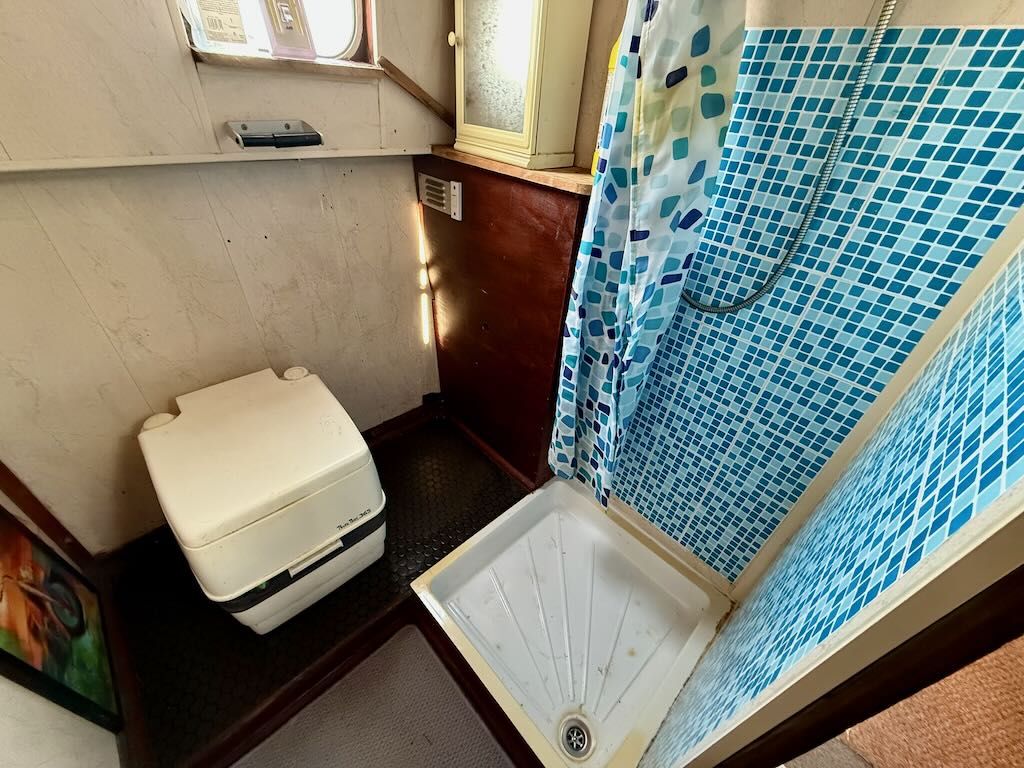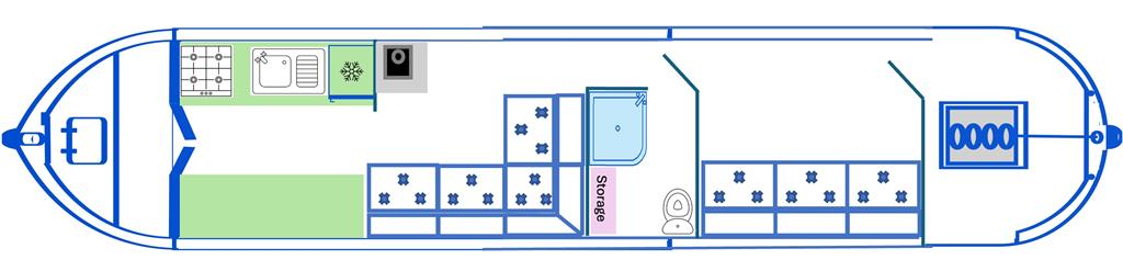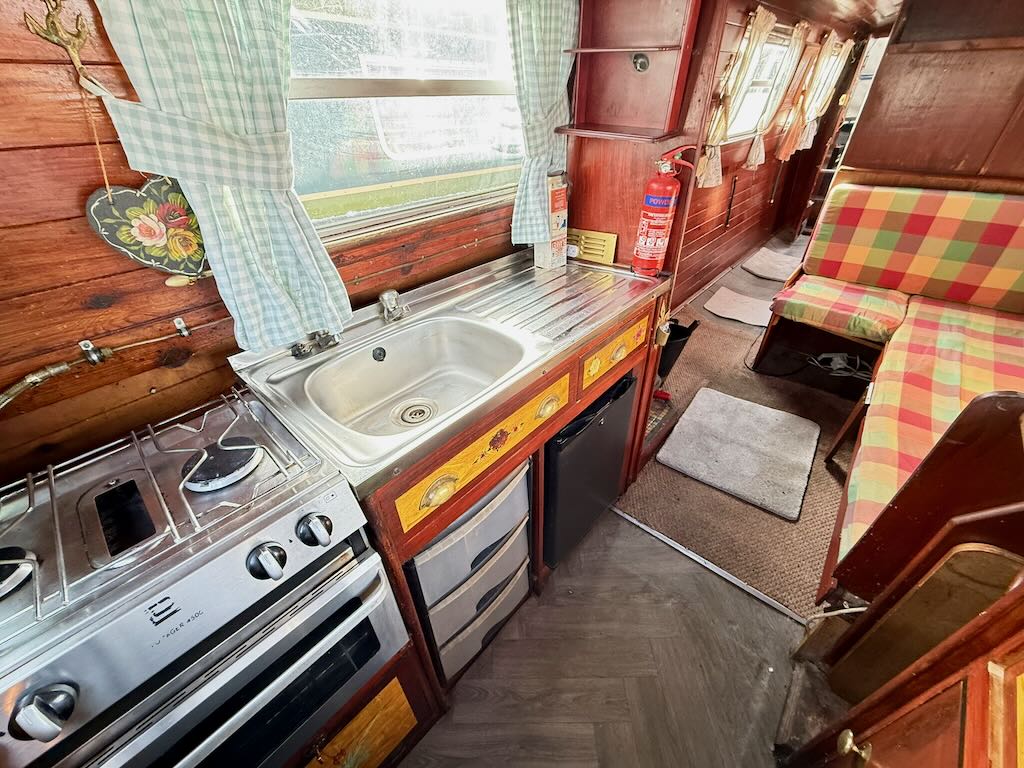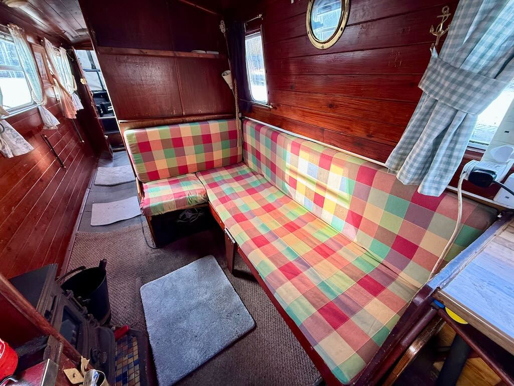 Annie is a 4 berth, 30ft cruiser style narrowboat, built in 1983 by Springer. She features a small galley in the bow, a saloon with a stove and L-shaped seating that converts to a double bed, a shower room with porta-potti and further seating at the stern that converts to a double bed.