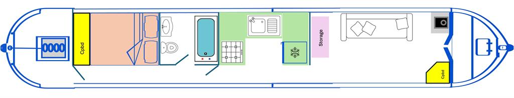 Esme Owl Too is a 4 berth, 45ft cruiser style narrowboat, built in 1997 by Liverpool. She features a saloon with sofa bed and stove, a galley with cooker and fridge, bathroom with shower over bath, toilet and vanity basin and a fixed double bed at the stern.