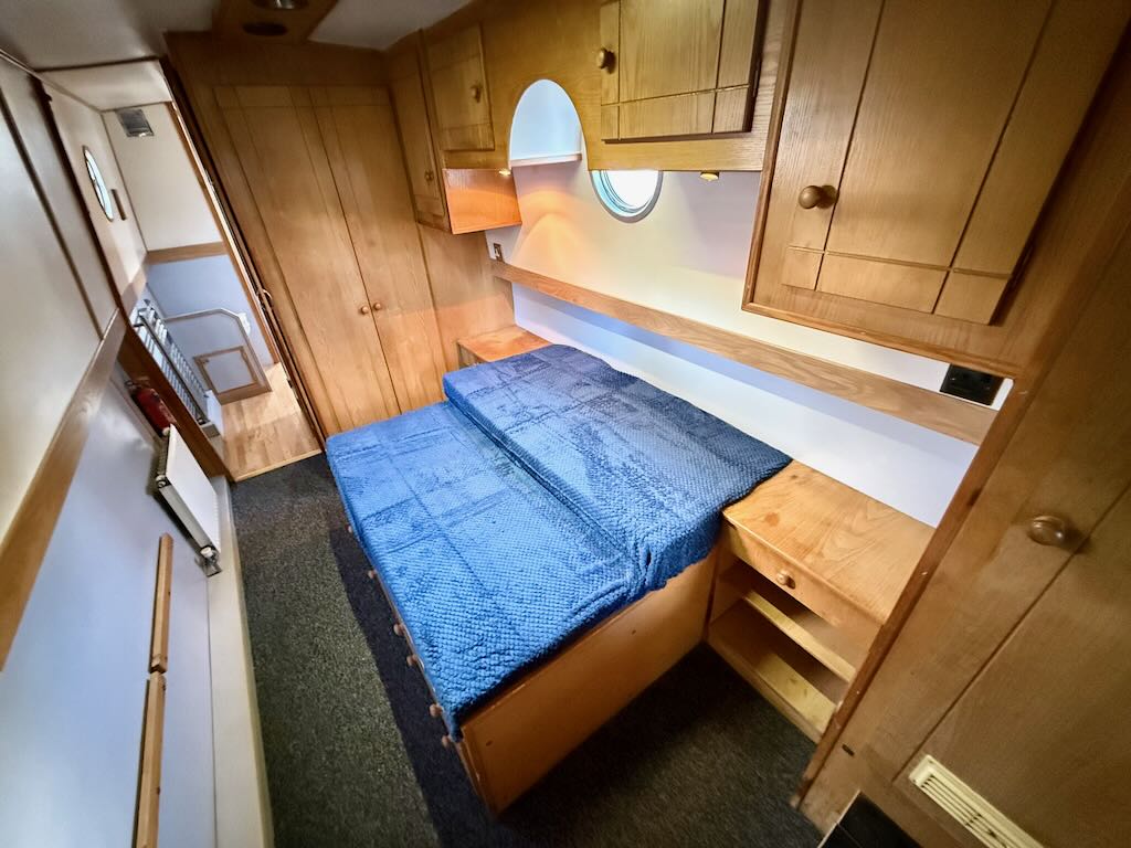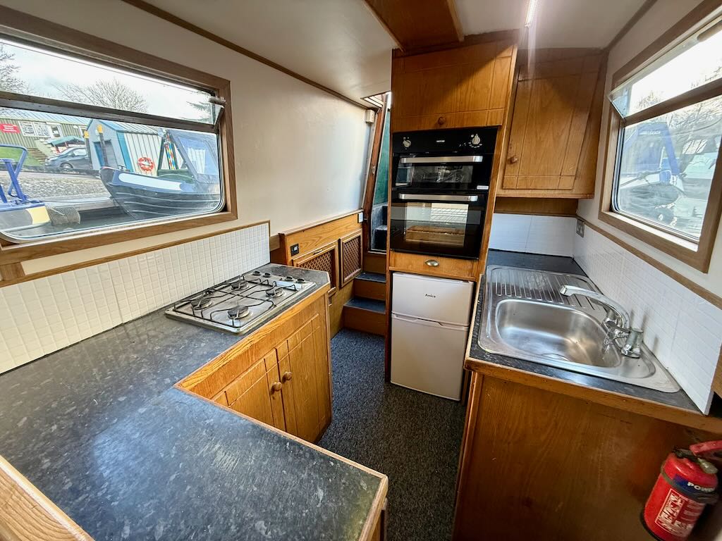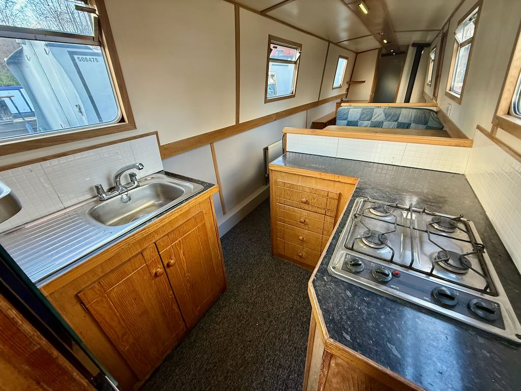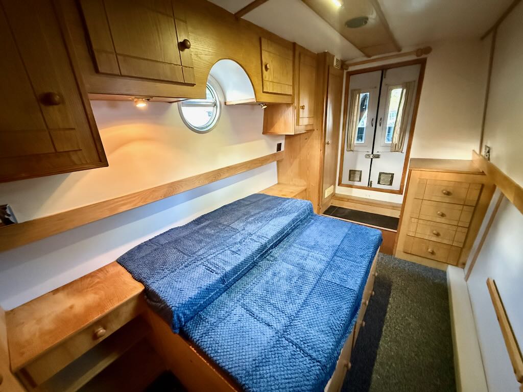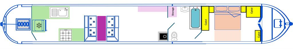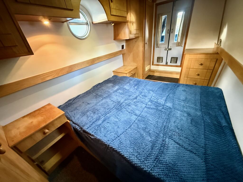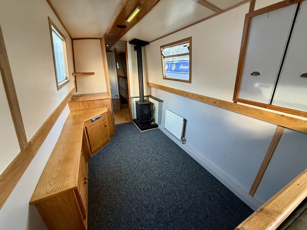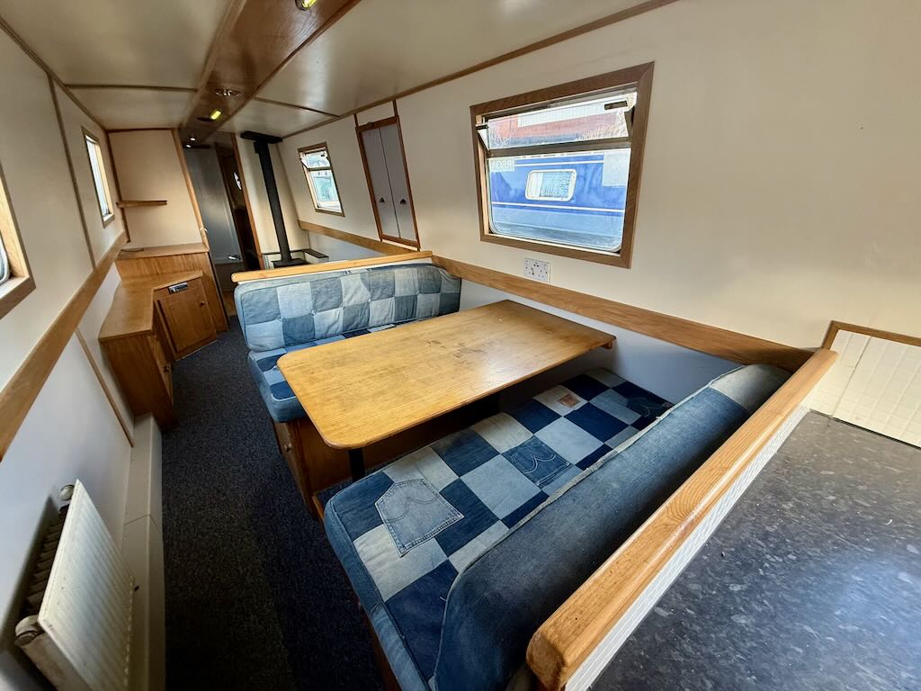 Shush is a 4 berth, 57ft semi-traditional style narrowboat, built in 2007 by John Whilte and Triton Boatfitters. She features a reverse layout with the galley at the stern, a dinette that converts to a double bed, saloon with stove, walkthrough bathroom and a make up double bed at the bow.