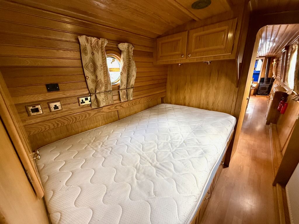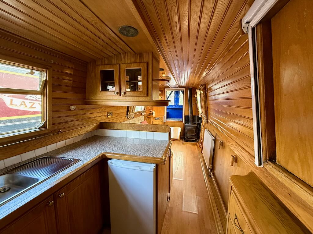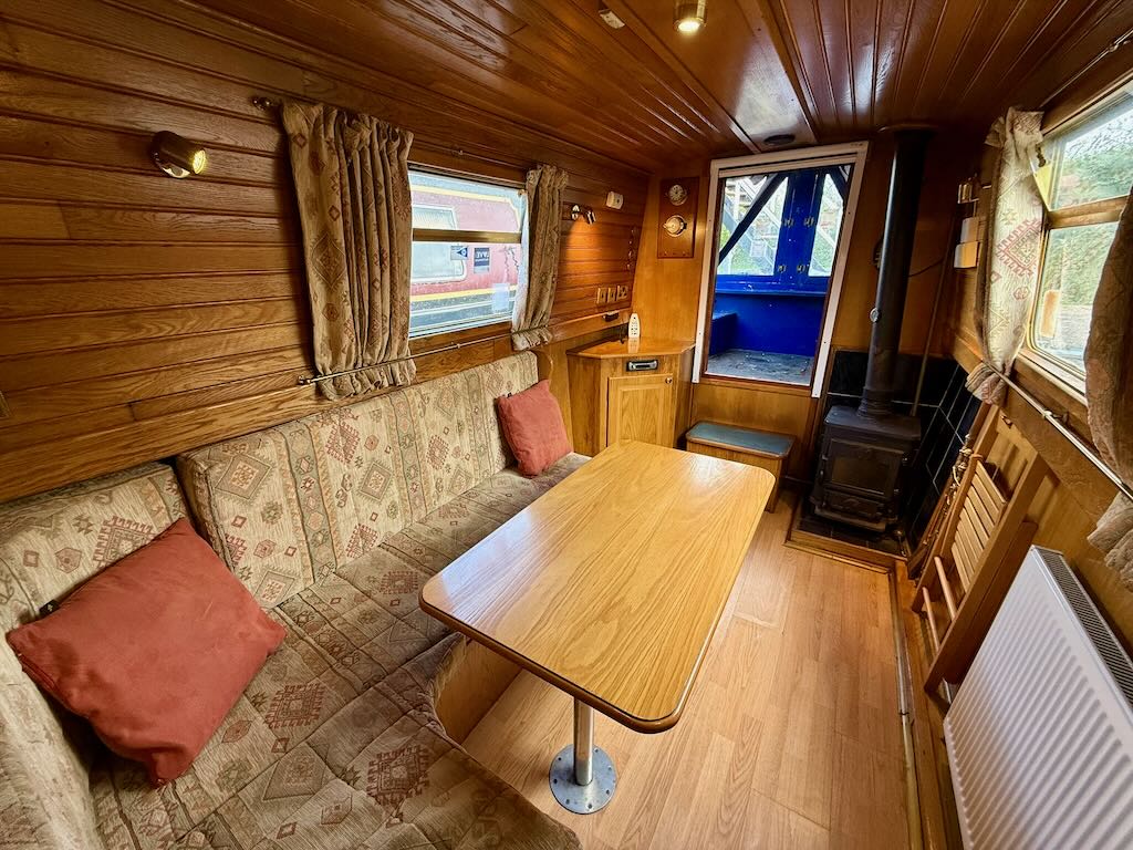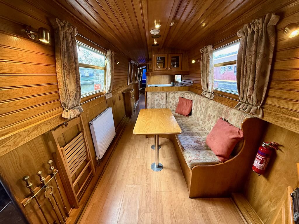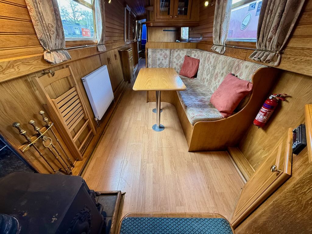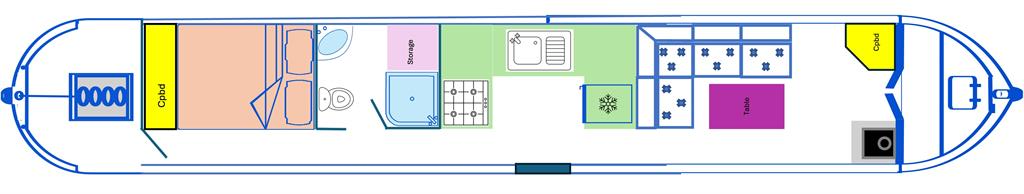 Archimedes is a sweet 4 berth, semi-traditional style narrowboat, built in 2003 by Liverpool Boats. She features a saloon with stove and L-shaped seating that converts to a double bed, galley with oven, hob and fridge, bathroom with toilet, shower and vanity basin, and a fixed double bed at the stern.