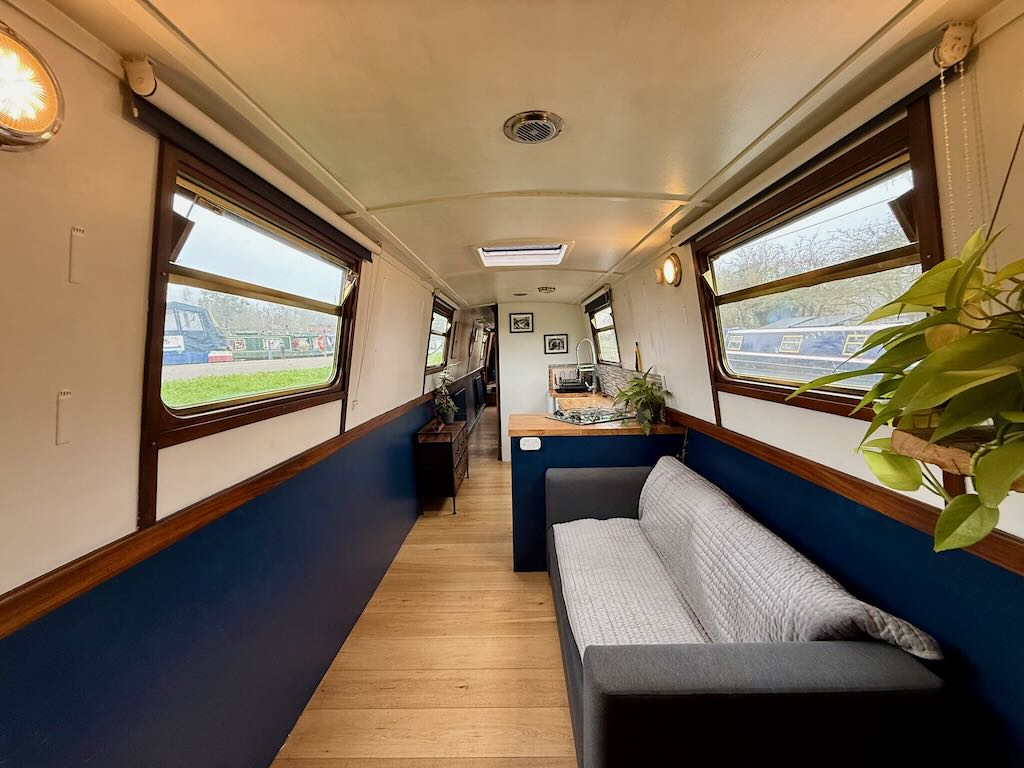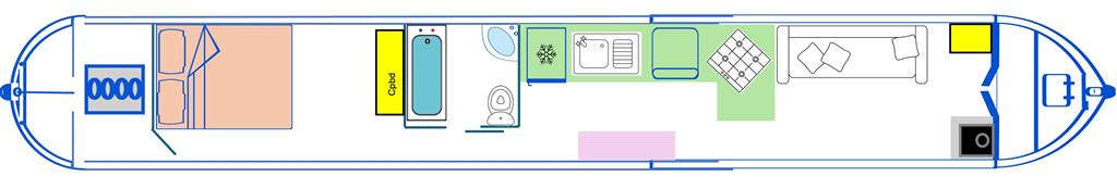 Valerie Anne is a 4 berth, 50ft traditional style narrowboat, built in 1998 by Bridgewater Boat Builders. She features an airy saloon area with stove and sofa bed, an L-shaped galley with oven, hob and fridge, bathroom with shower over bath, toilet and vanity basin, and a fixed double bed in a large bedroom at the stern.