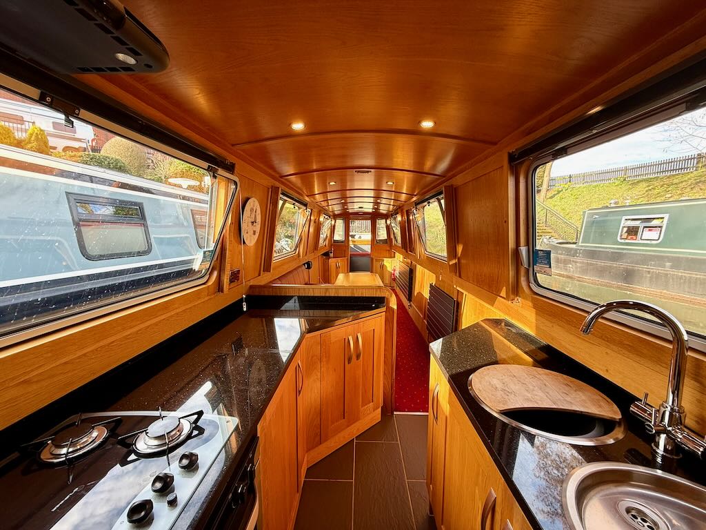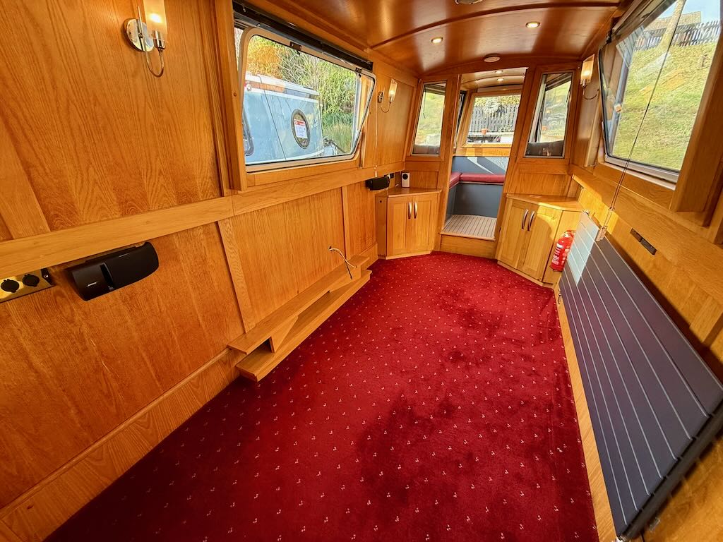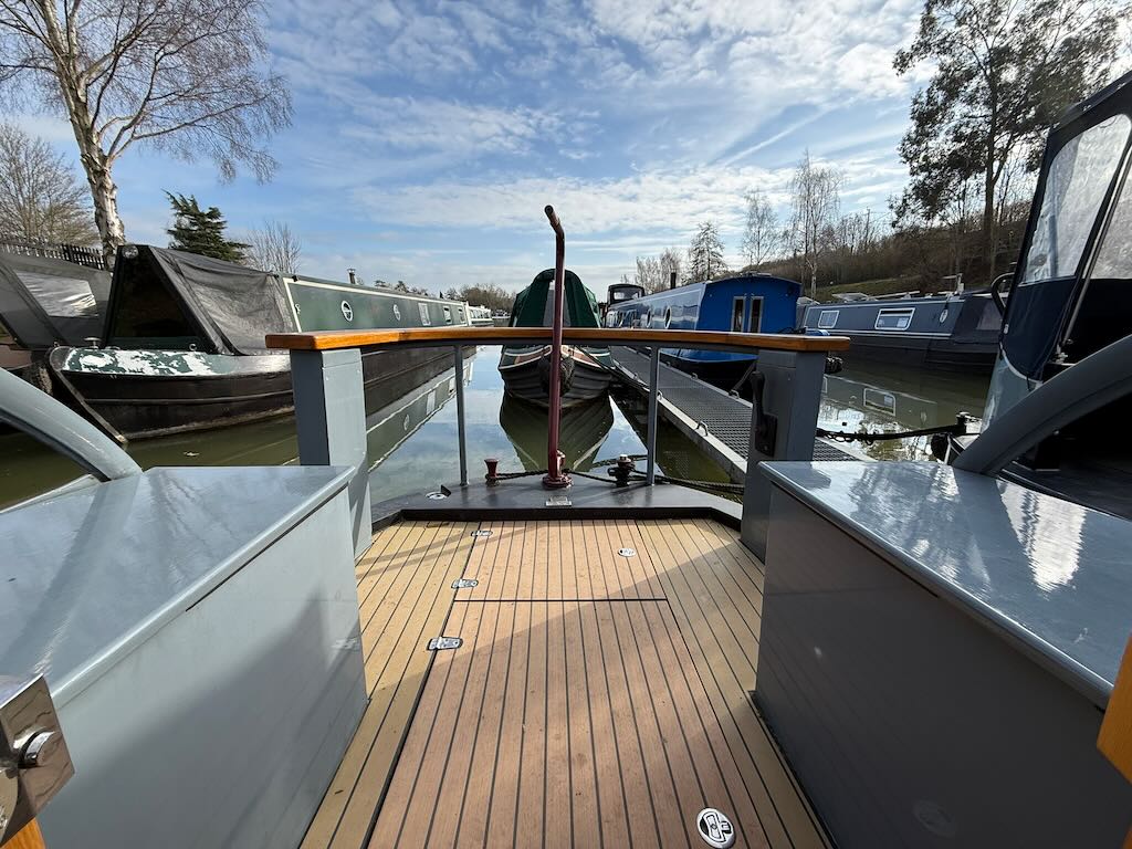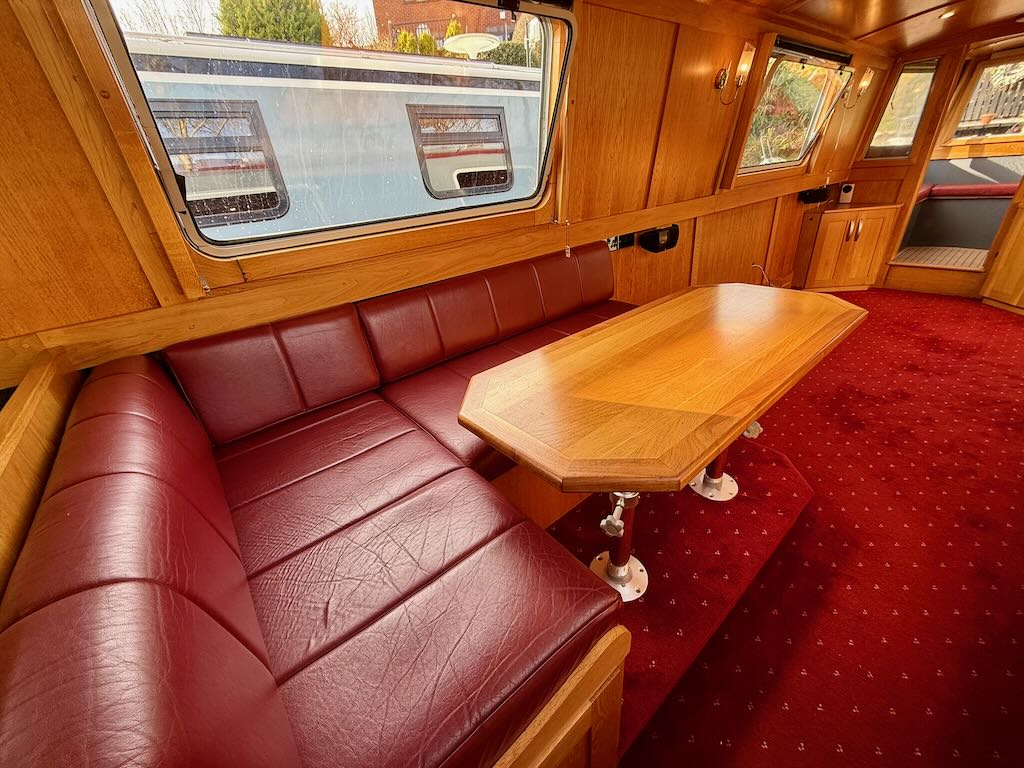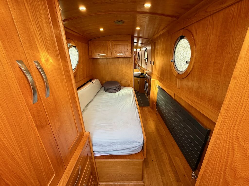 Double Infinity is a beautiful 4 berth, 60ft cruiser style narrowboat, built in 2015 by JD Narrowboats. She features a large saloon with space for a sofa or chairs, an L-shaped dinette that converts to a double bed, a galley with oven, hob and fridge, walkthrough bathroom with shower, toilet and vanity basin, and a fixed double bed that can be extended to a king size, and 2 large wardrobes at the stern. She also has a large bow with seating, a fixed cratch roof and roll up sides.