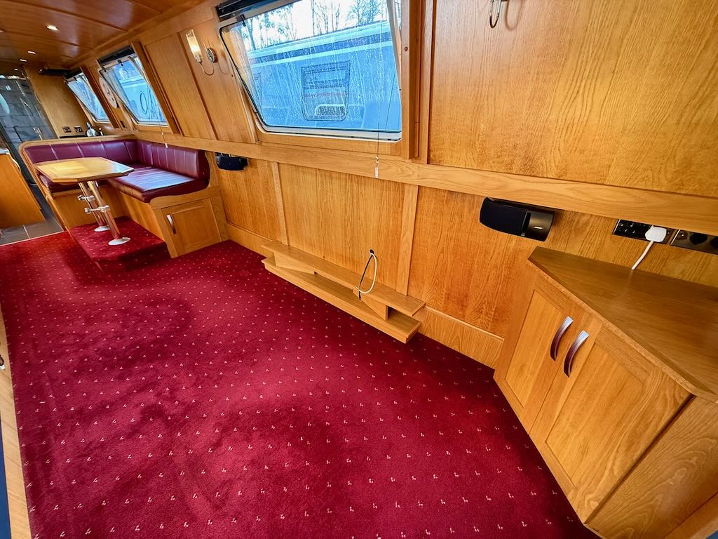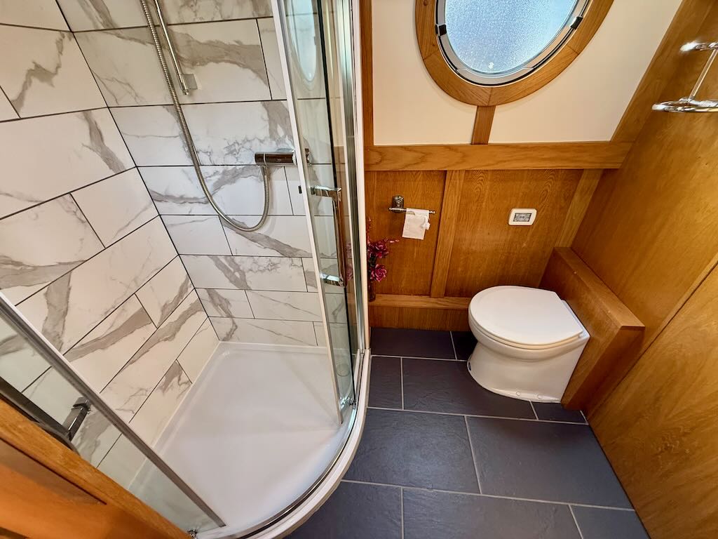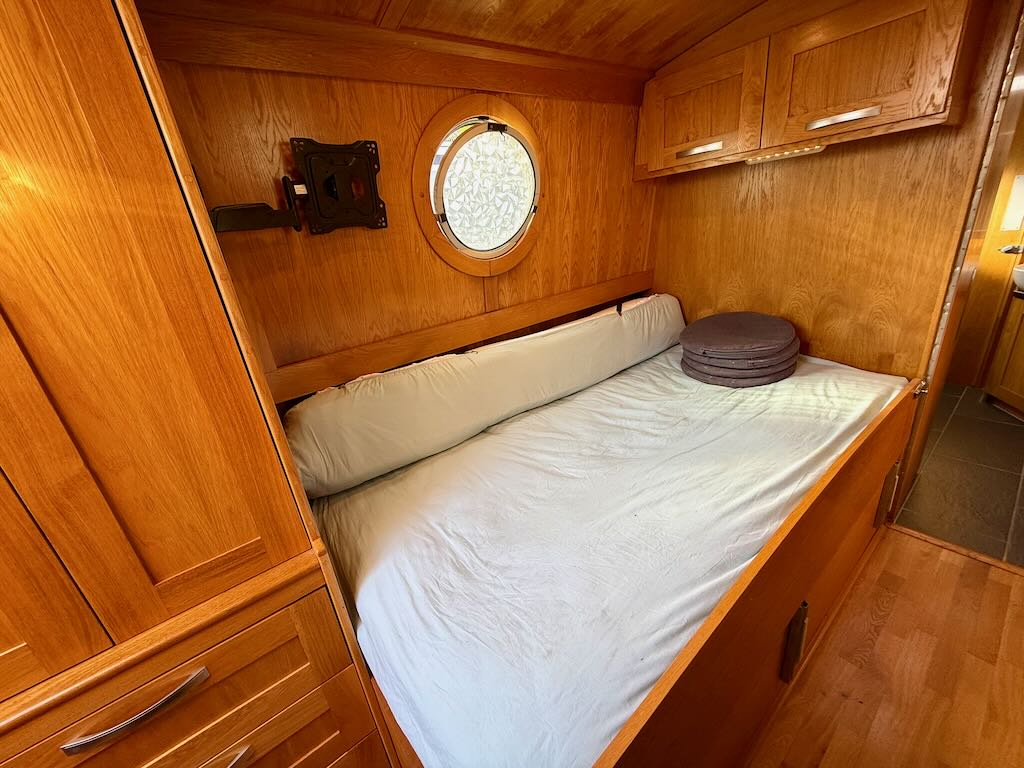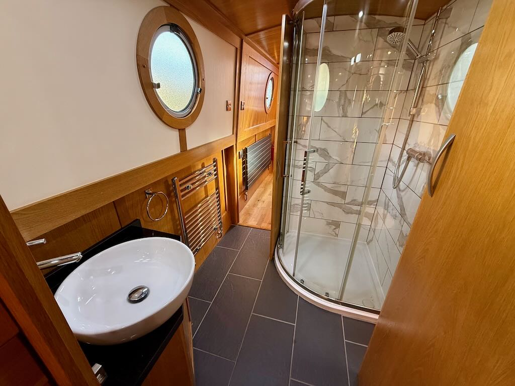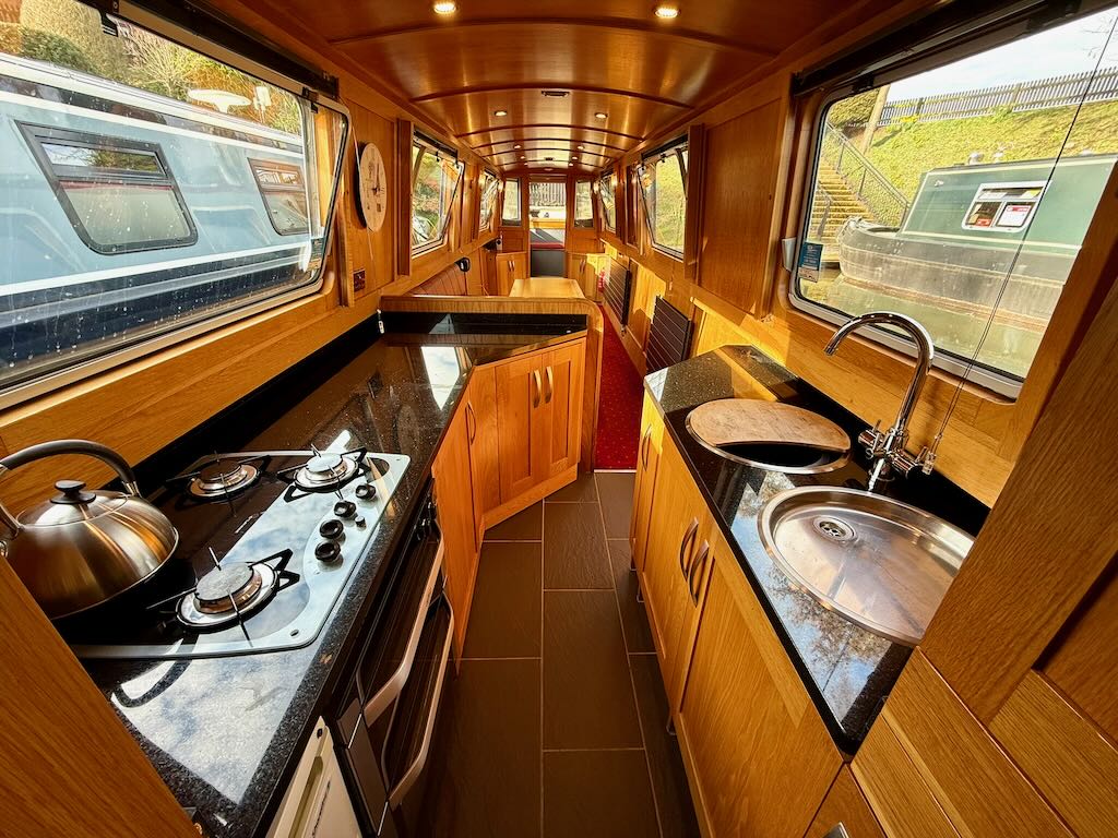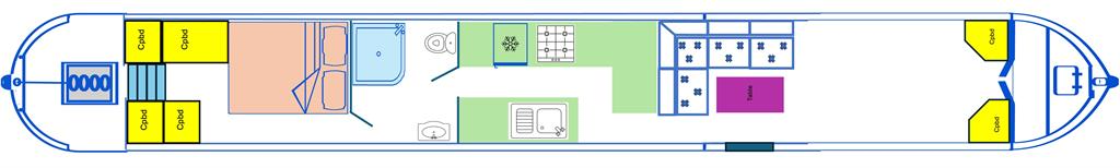 Double Infinity is a beautiful 4 berth, 60ft cruiser style narrowboat, built in 2015 by JD Narrowboats. She features a large saloon with space for a sofa or chairs, an L-shaped dinette that converts to a double bed, a galley with oven, hob and fridge, walkthrough bathroom with shower, toilet and vanity basin, and a fixed double bed that can be extended to a king size, and 2 large wardrobes at the stern. She also has a large bow with seating, a fixed cratch roof and roll up sides.