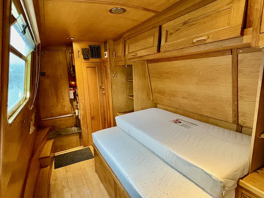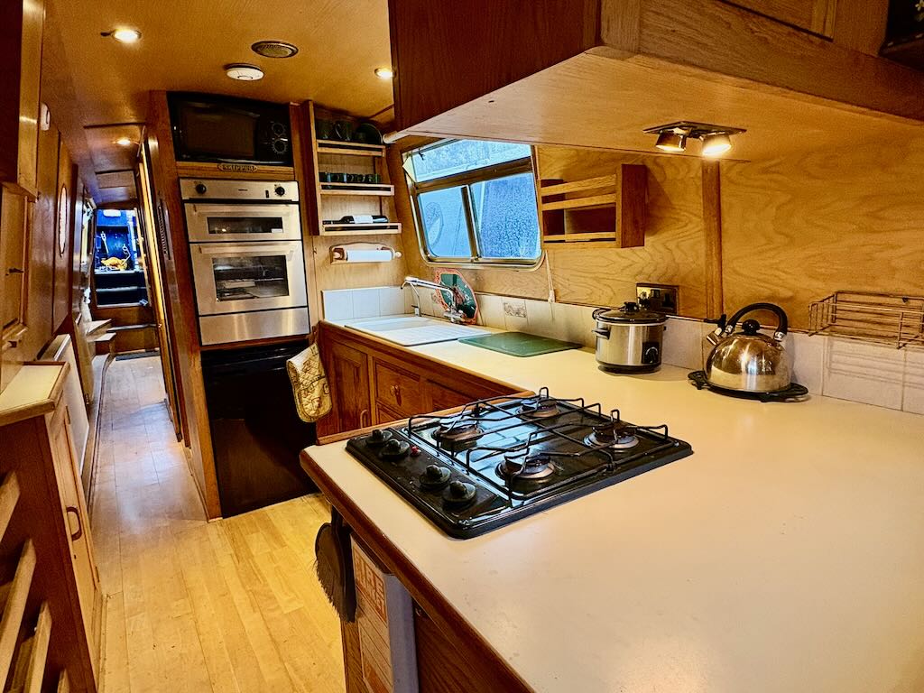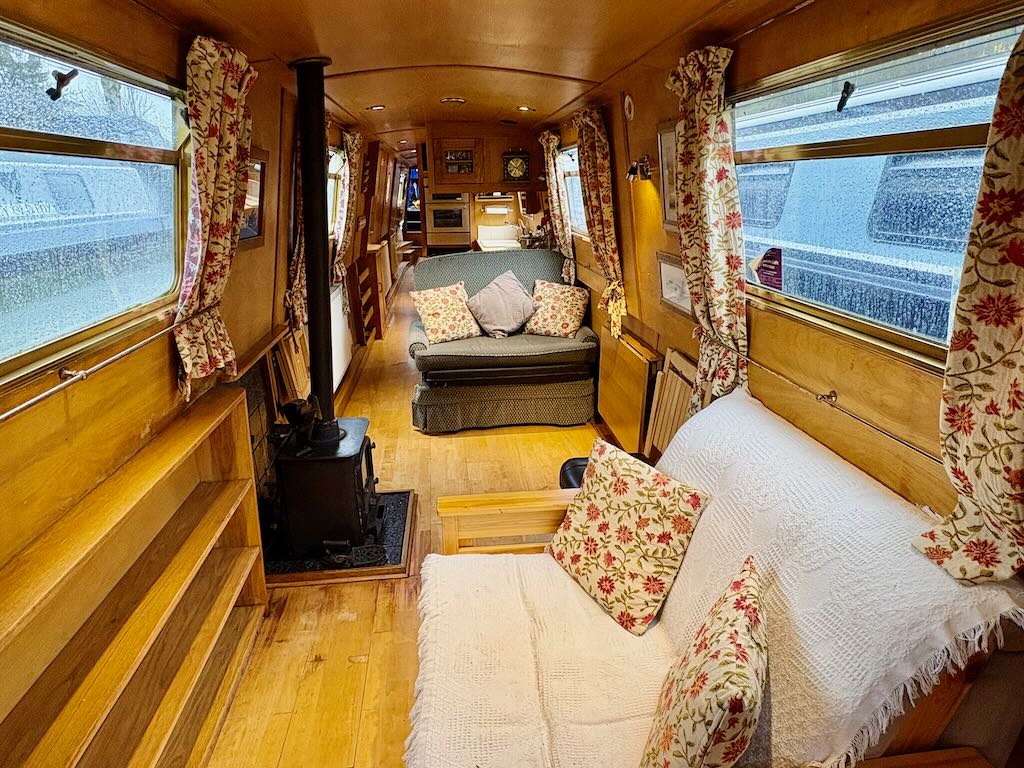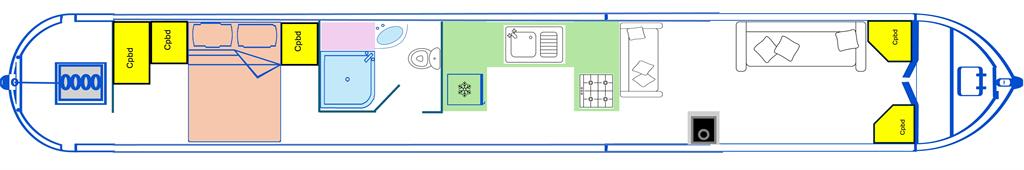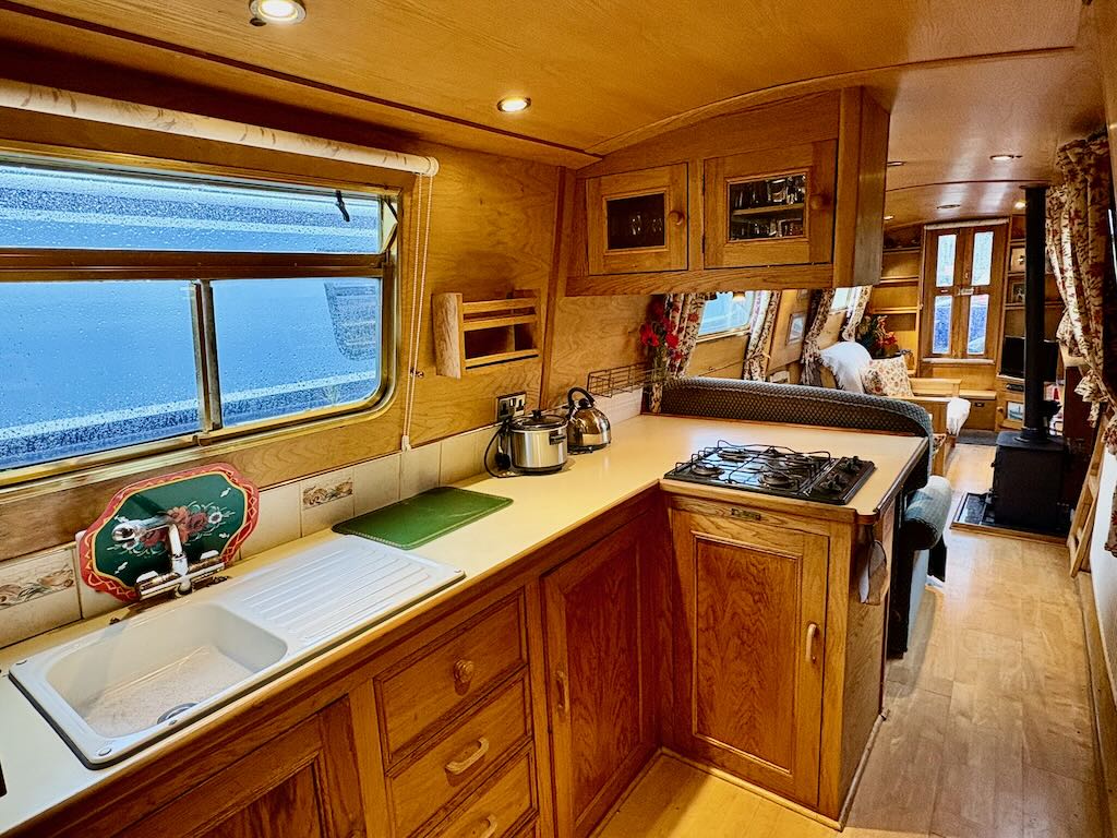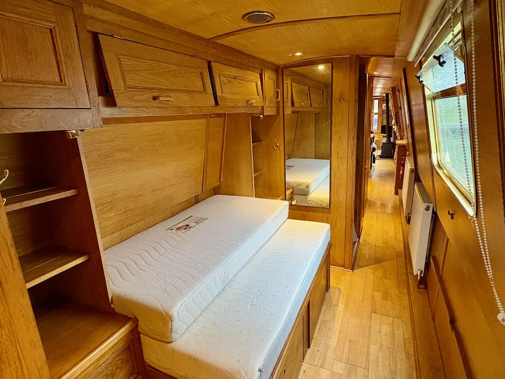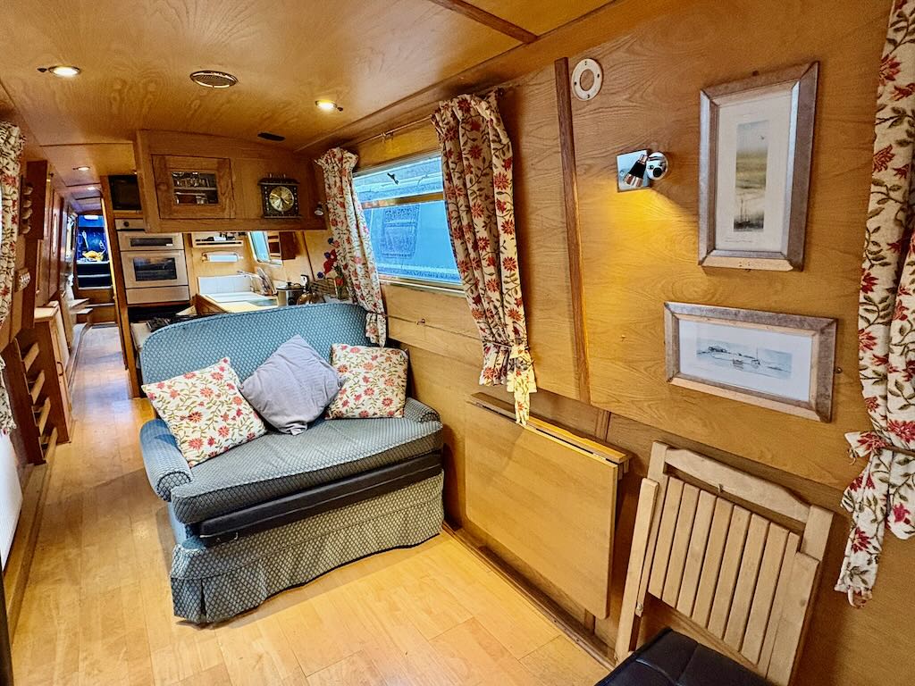 Doinmein is a lovely 5 berth, 58ft semi-traditional style narrowboat, built in 2002 by Severn Valley Boats. She features a saloon with stove, sofa bed and bed chair, galley with oven, hob and fridge, bathroom with shower, toilet and vanity basin and a cross double bed at the stern.