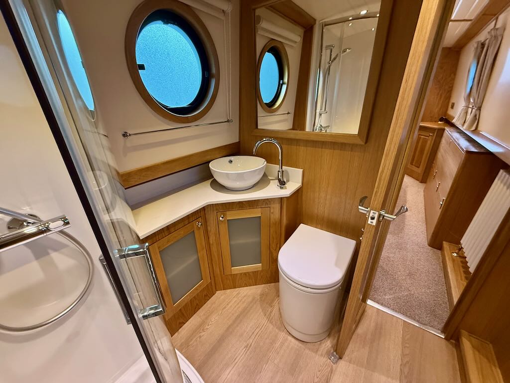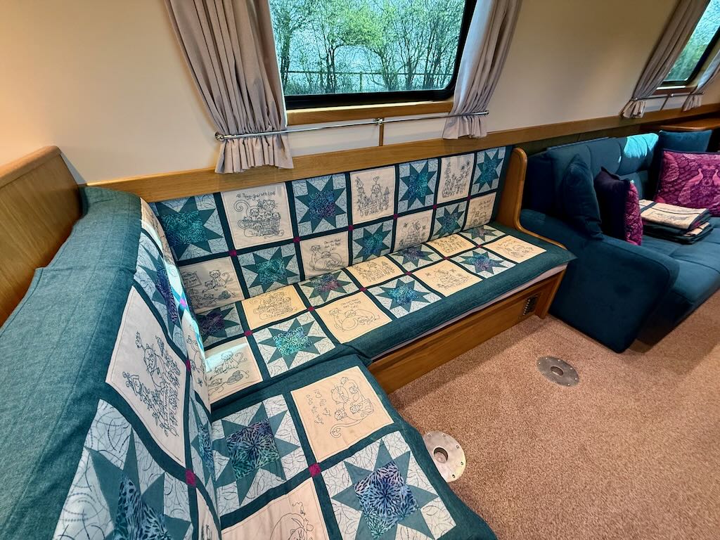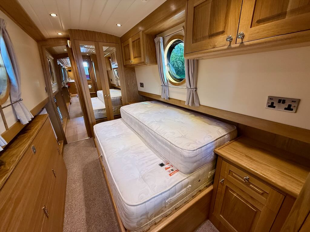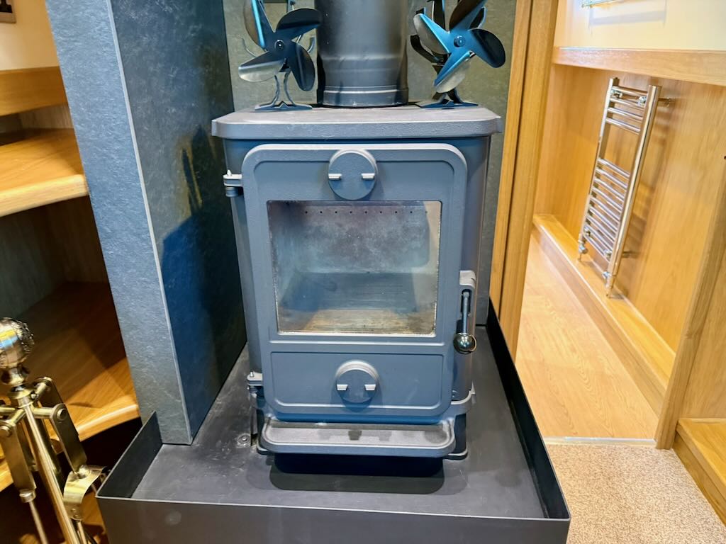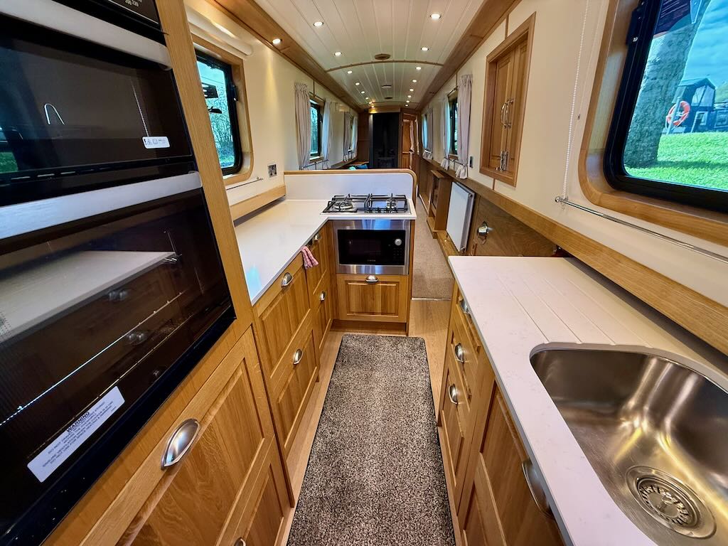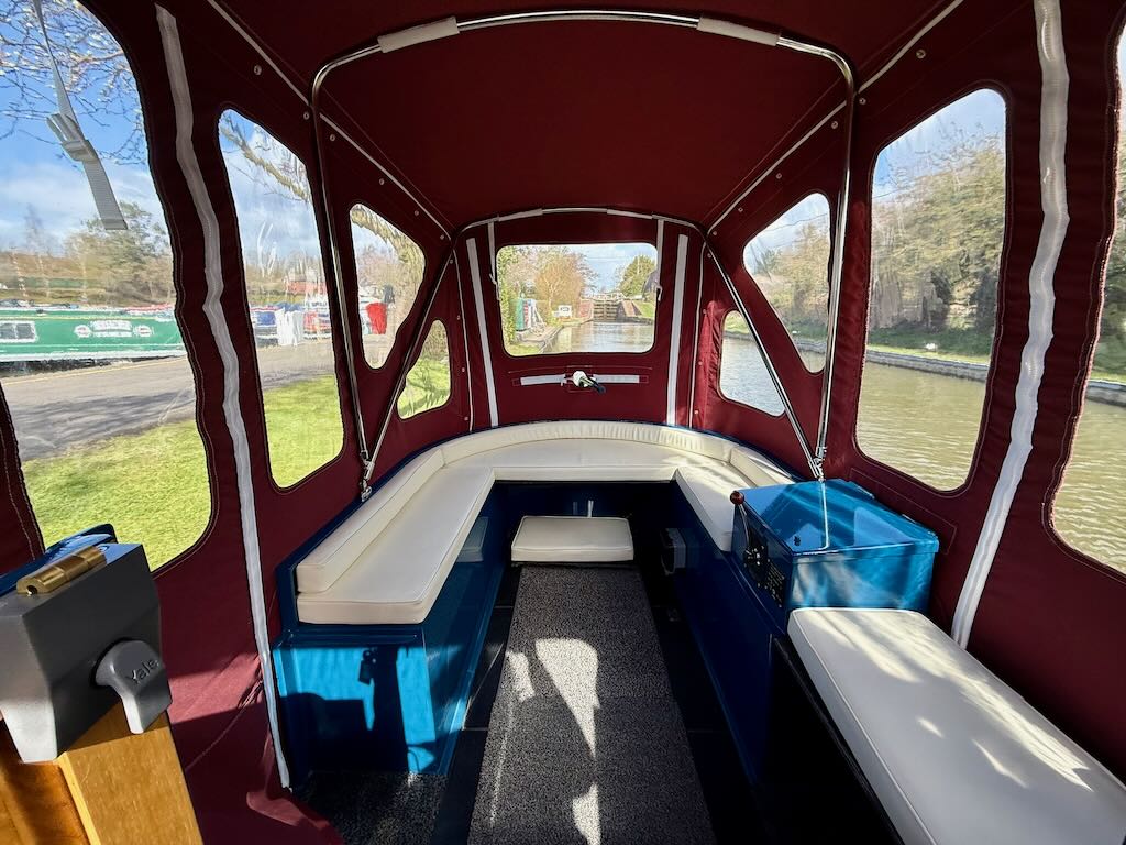 Just Purrrfect is a stunning 6 berth, cruiser style narrowboat, built in 2024 by Collingwood. She features a reverse layout with the galley, with oven, hob, microwave, washing machine and fridge, at the stern, saloon with L-shaped dinette that converts to double bed, sofa bed and stove, walkthrough bathroom with shower, compost toilet and vanity basin, and cross double bed at the bow. The boat comes with a wealth of extras such as a TV, a full set of un-tinted window glass, Digi Pro plus TV antenna, Nest thermostat control, spare compost fluid bottles, river anchor and more.