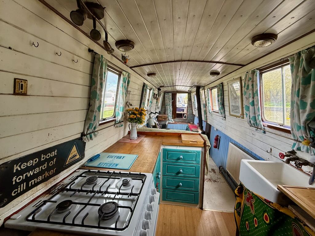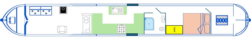 Boo Boos Deville is a 2 berth, 60ft traditional style narrowboat, built in 1991 by Colecraft. She features a saloon with sofa and stove, galley with cooker and sink, bathroom with shower, vanity basin and camping toilet, followed by a fixed double bed at the stern