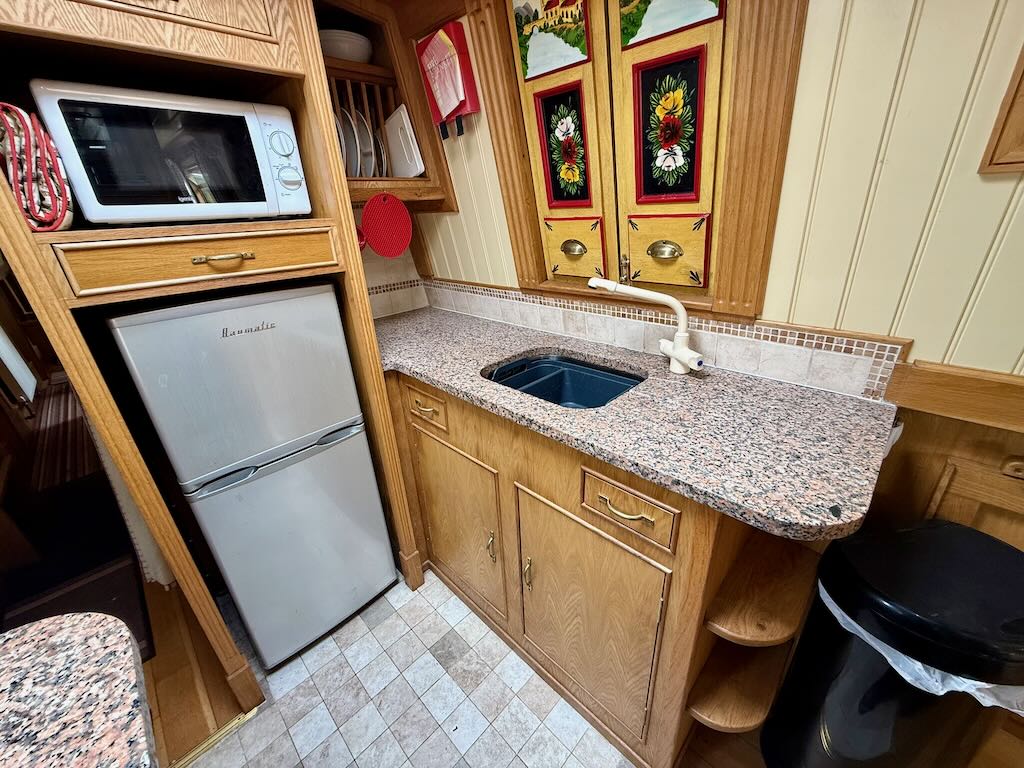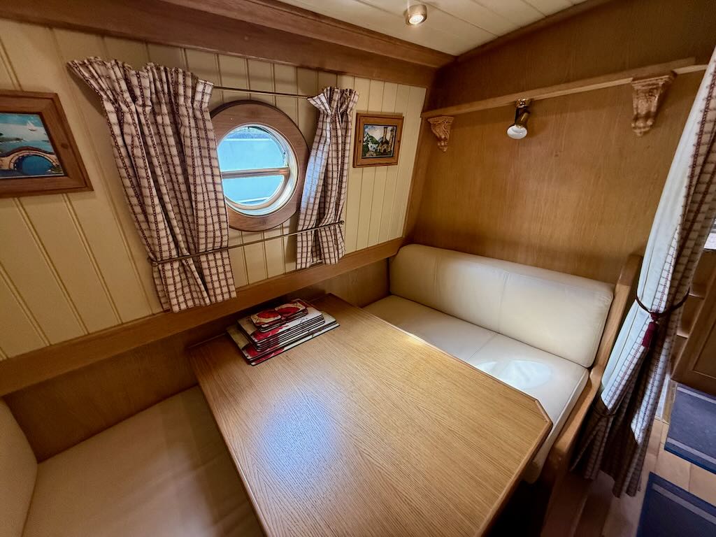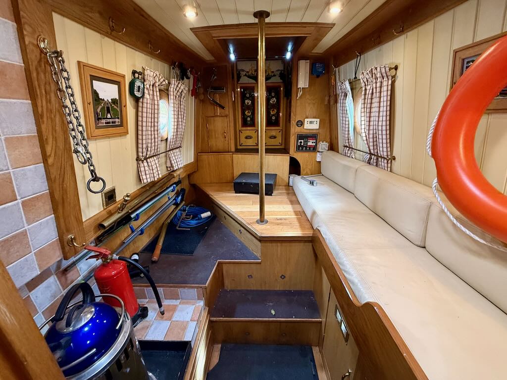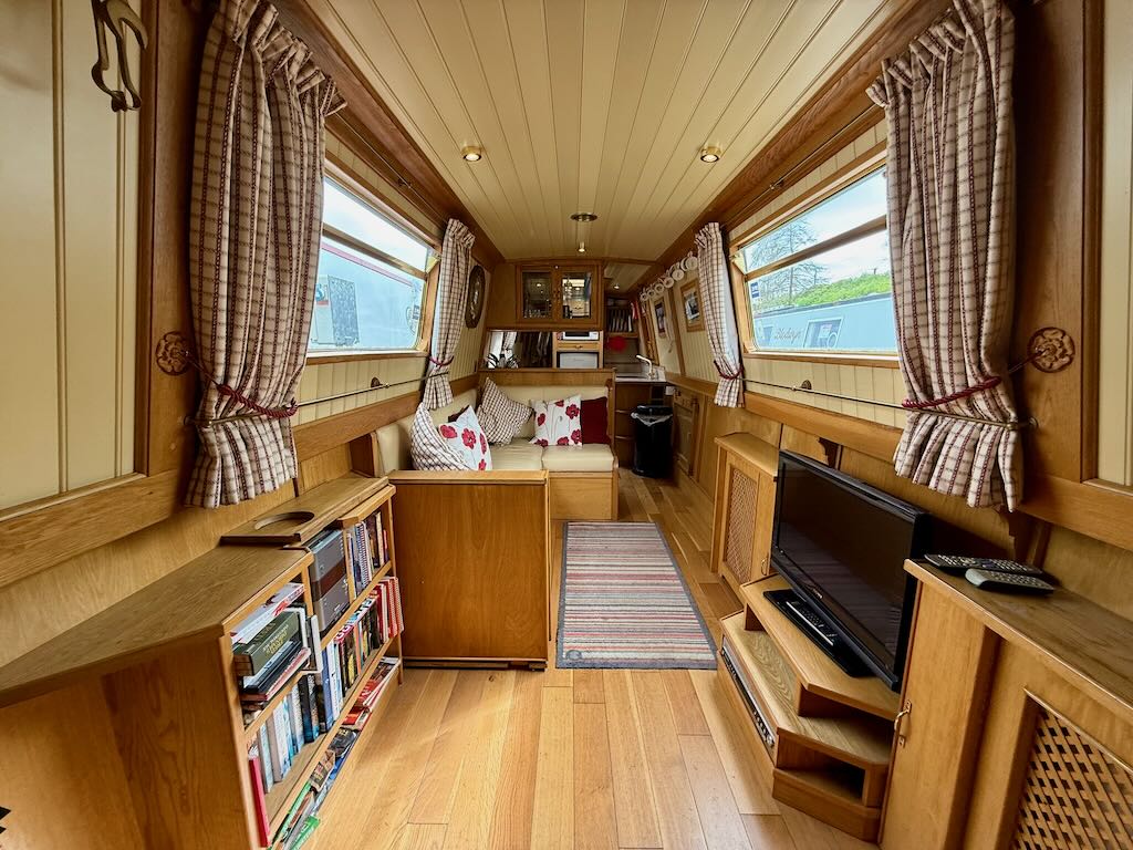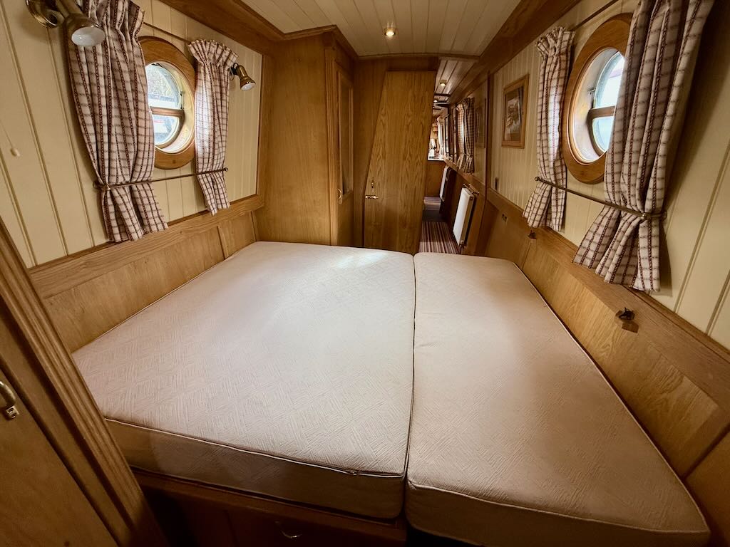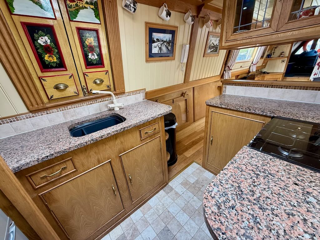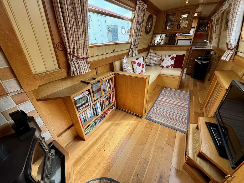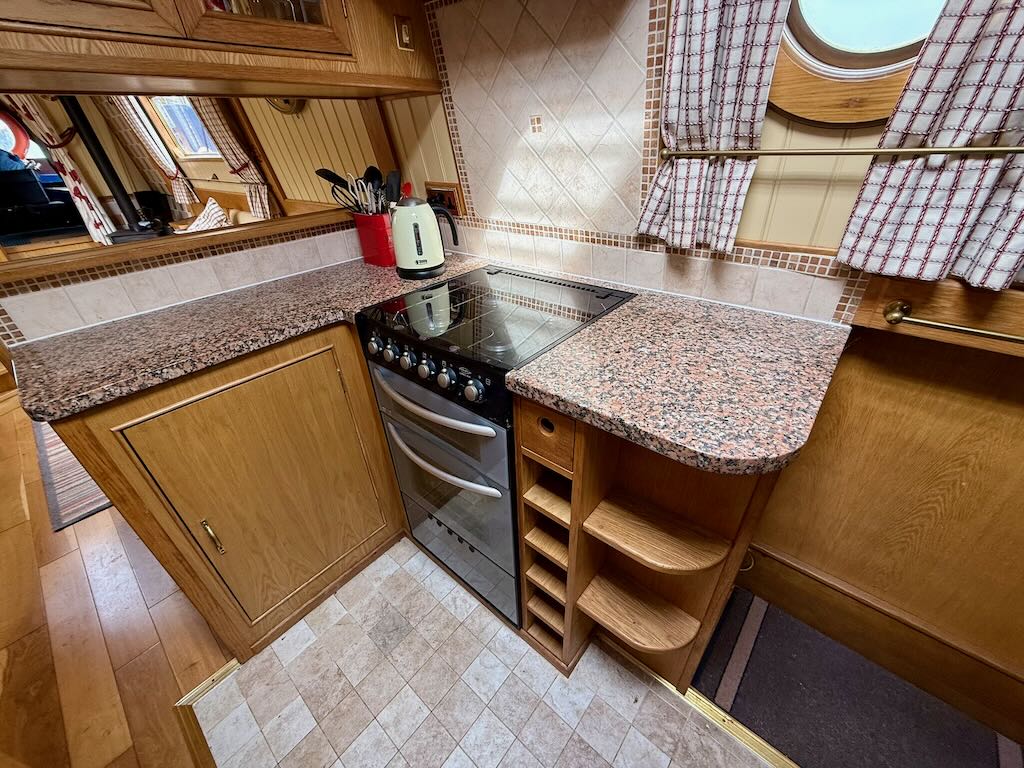 Chartwell is a lovely 7 berth, 69ft traditional style narrowboat, built in 2007 by Steve Emery. She features a saloon with stove and L-shaped seating that converts to a double bed, galley with oven, hob, fridge freezer and microwave, dinette that converts to a double bed, bathroom with shower, pumpout toilet and vanity basin, bedroom with cross double bed, utility area with second cassette toilet, vanity basin and washing machine, and a back cabin with seating that can be used as another single bed.